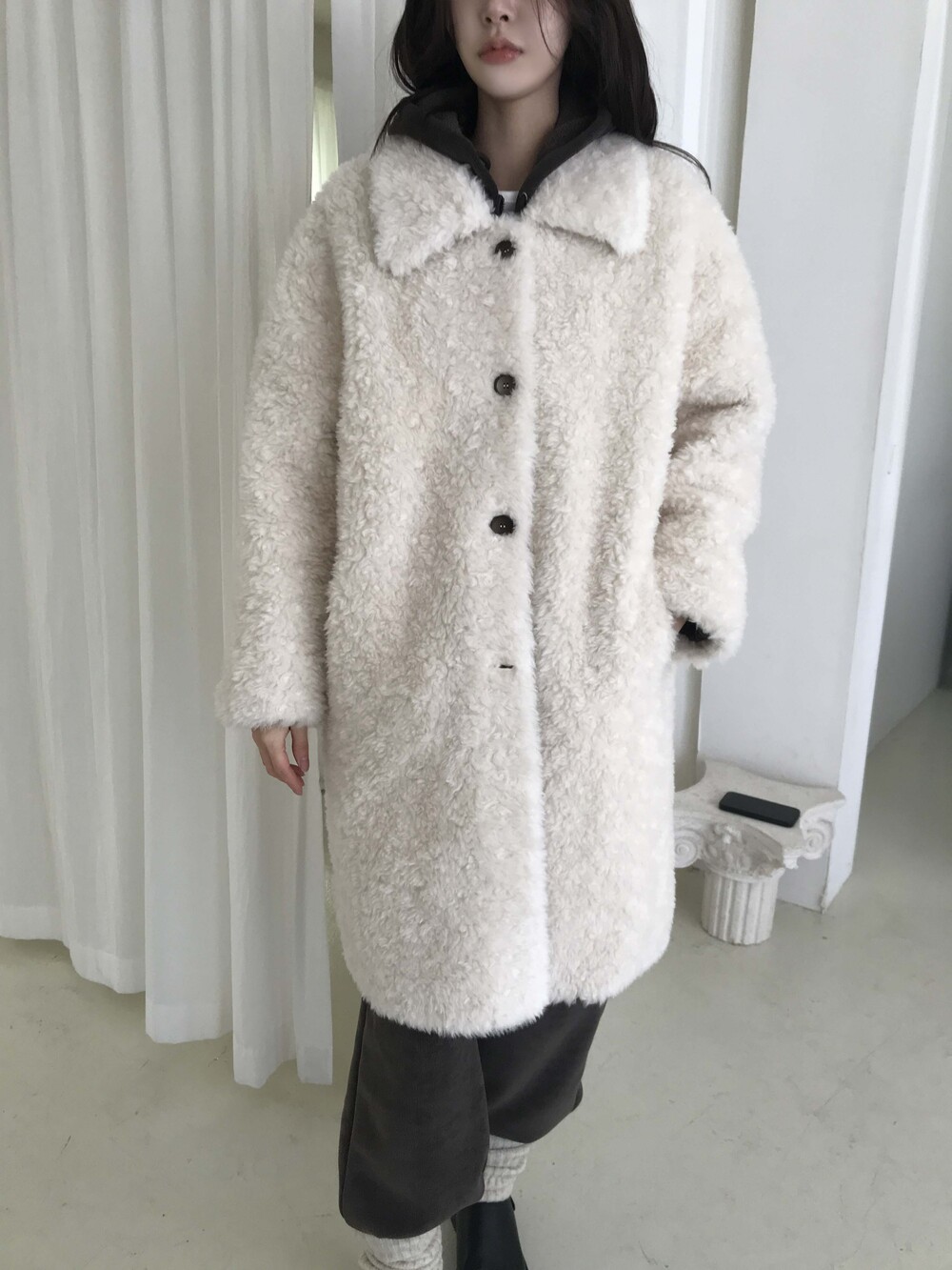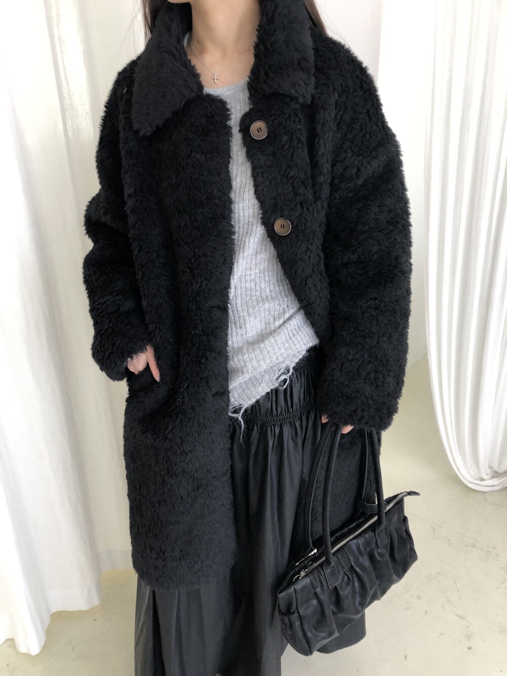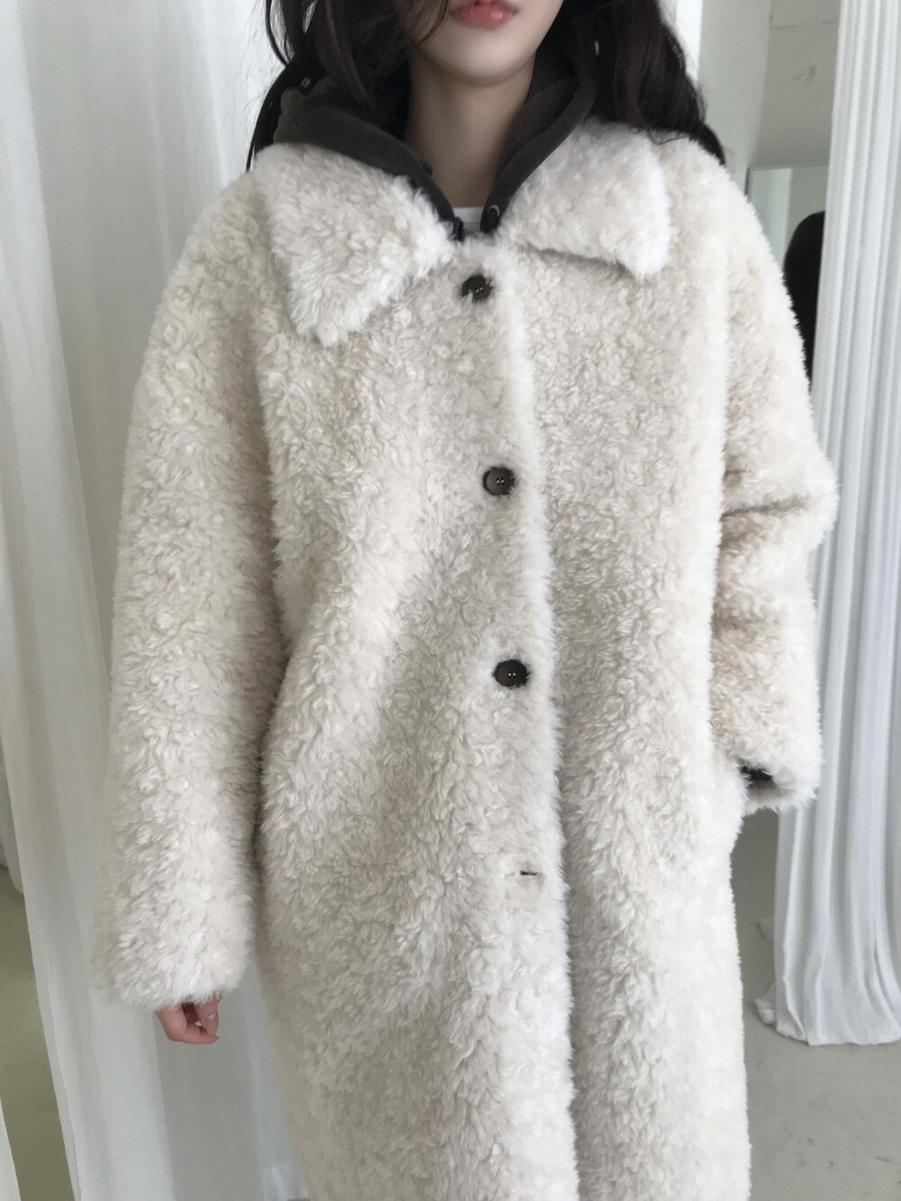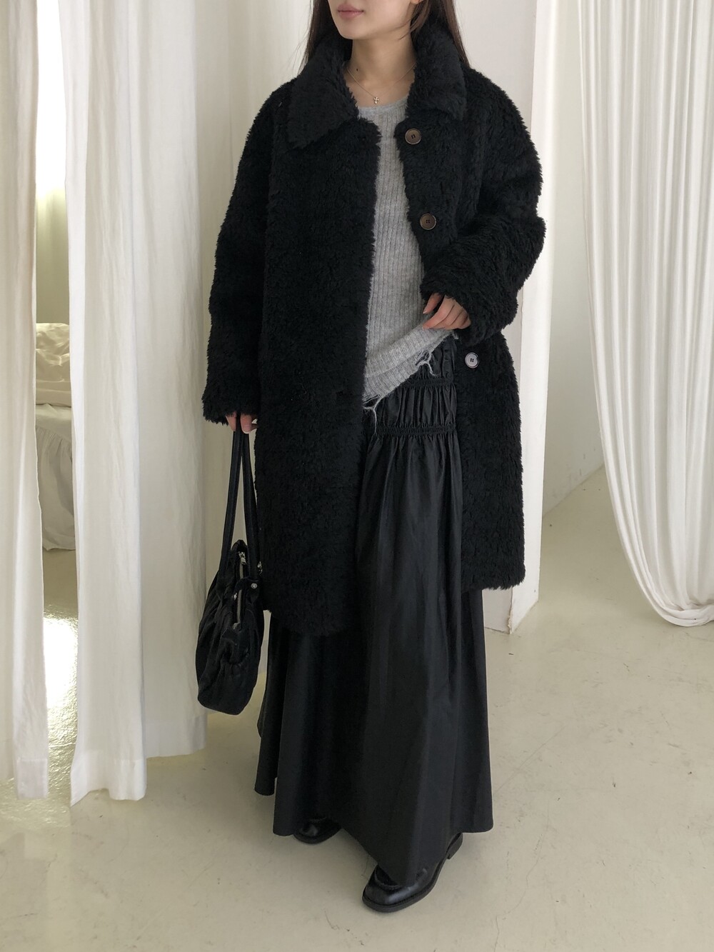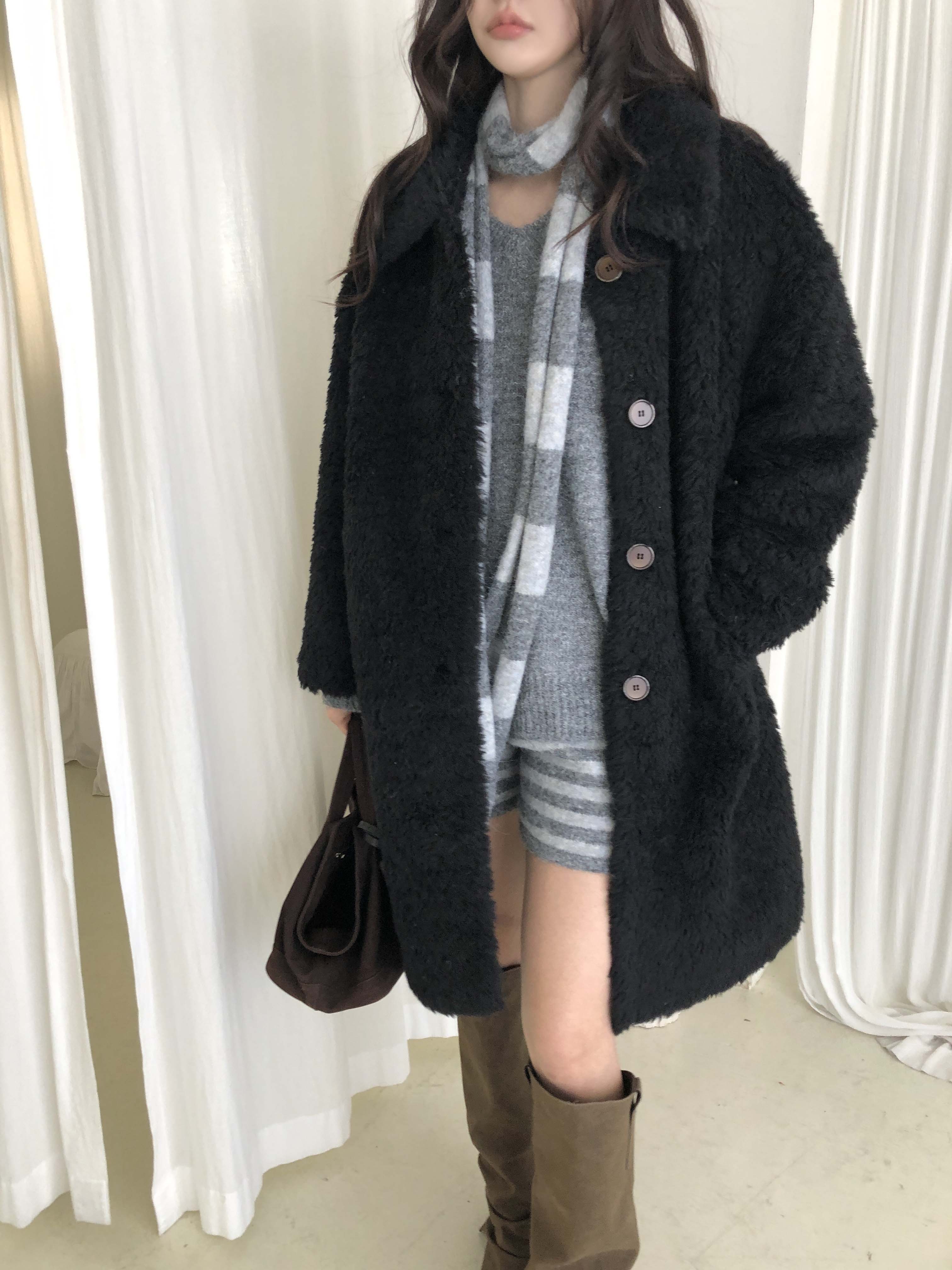 SINGLE LONG SHEARLING JACKET (2COLOR)
