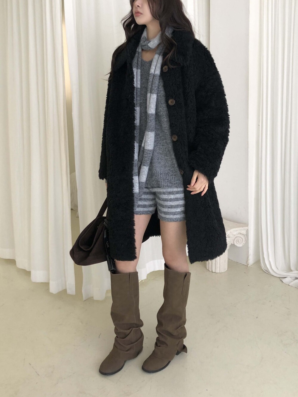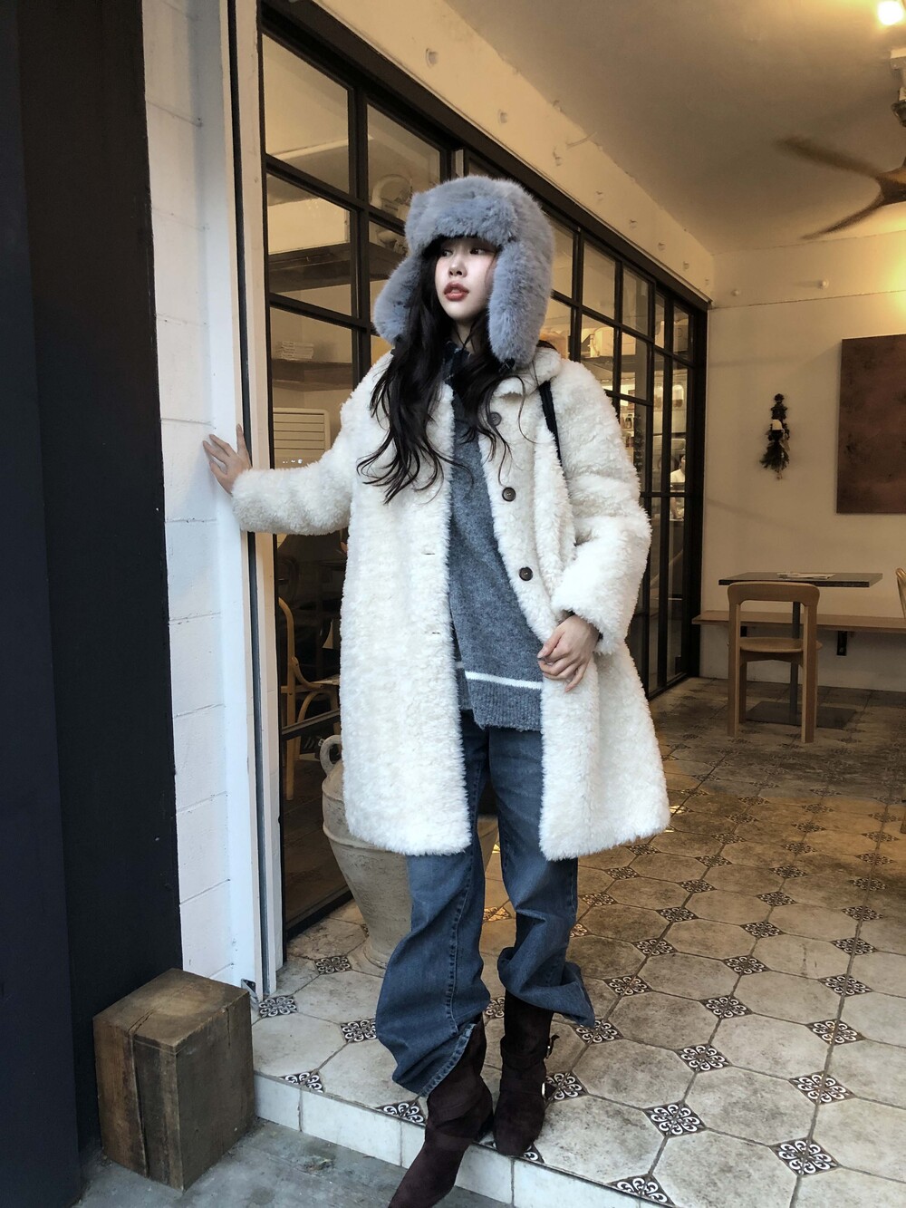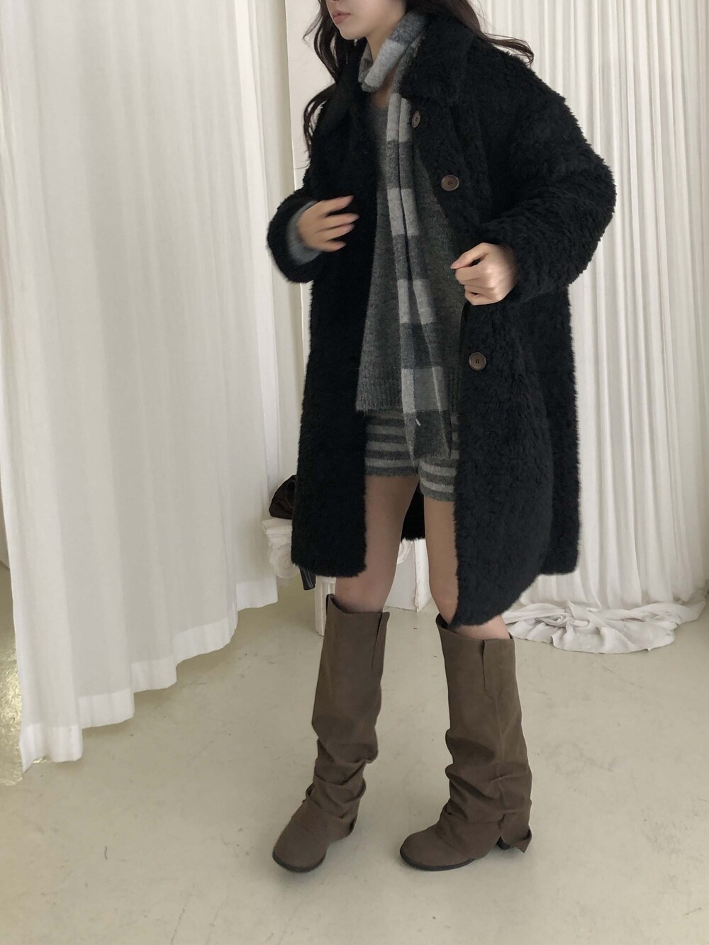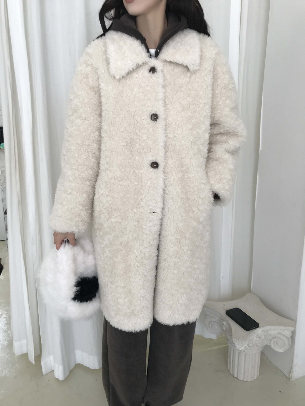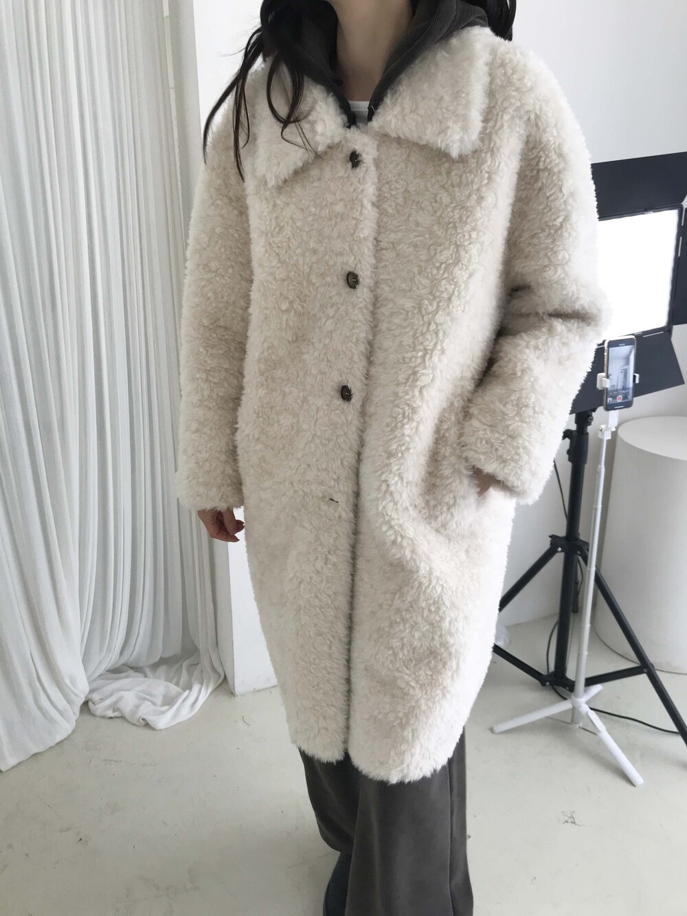 SINGLE LONG SHEARLING JACKET (2COLOR)