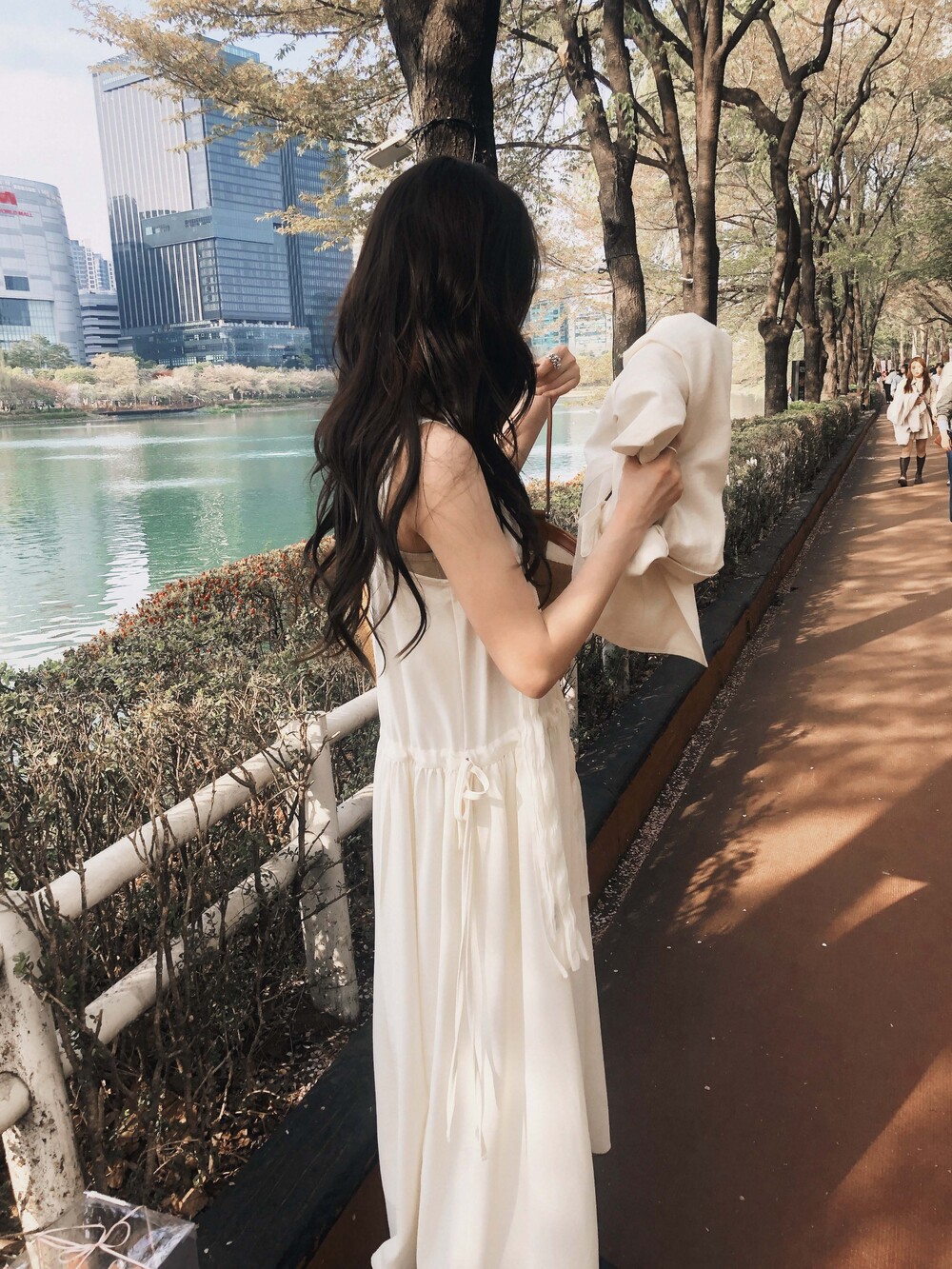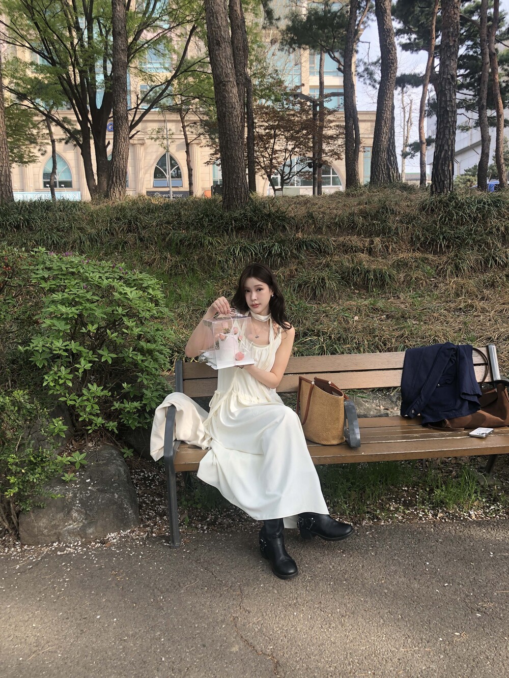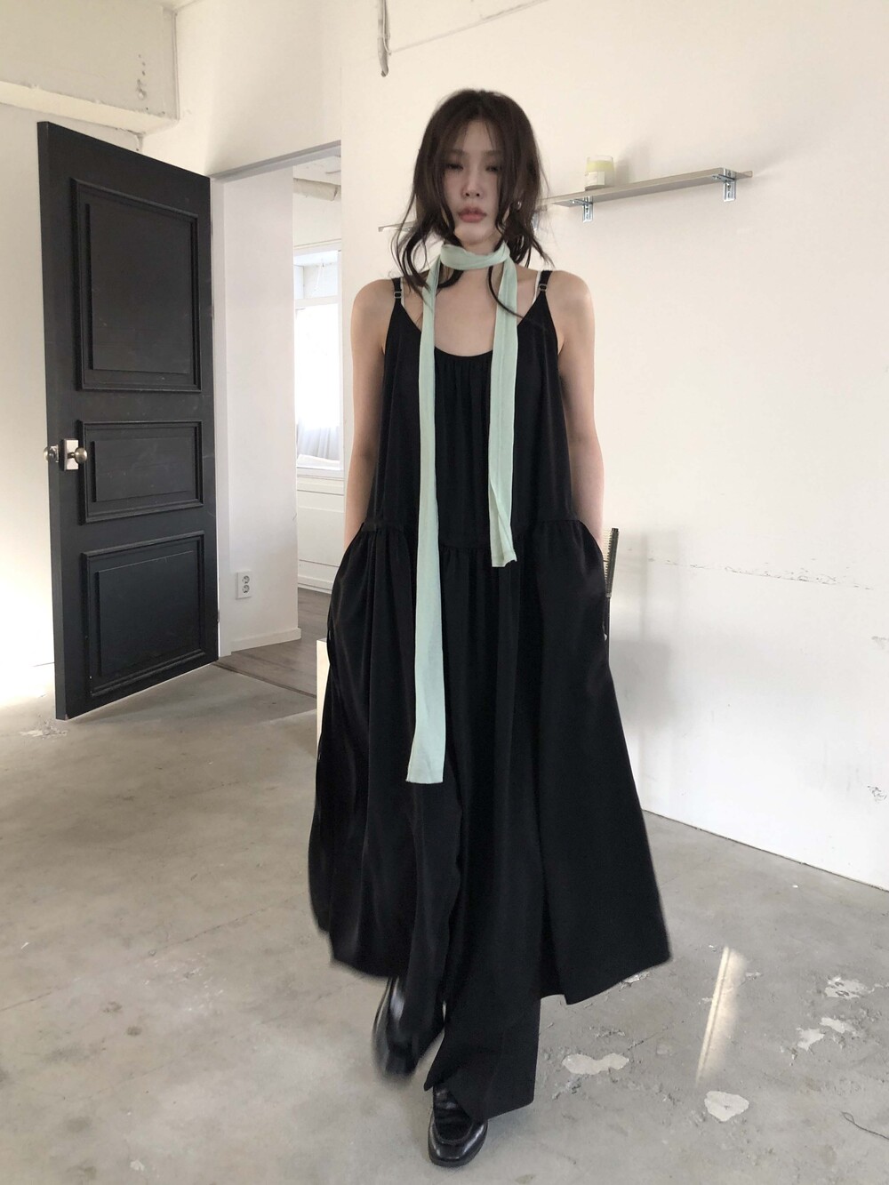 어깨끈 15(조절가능) 암홀 24 가슴 46 힙 53 밑단 112 총장 123