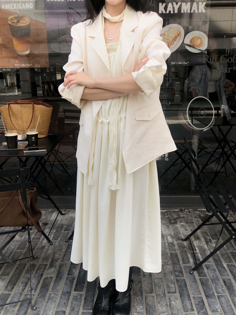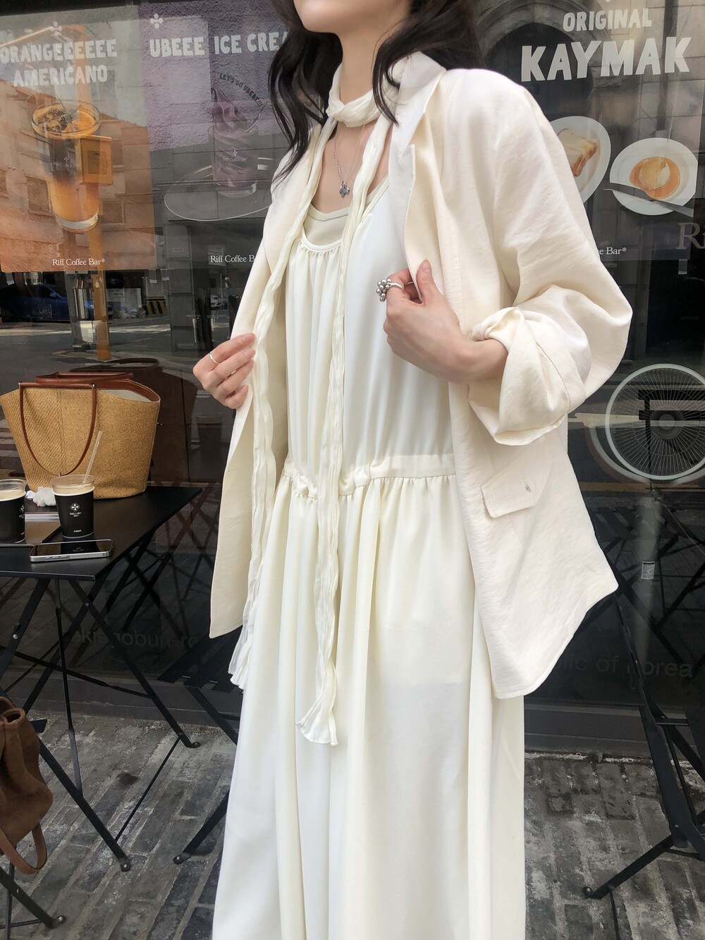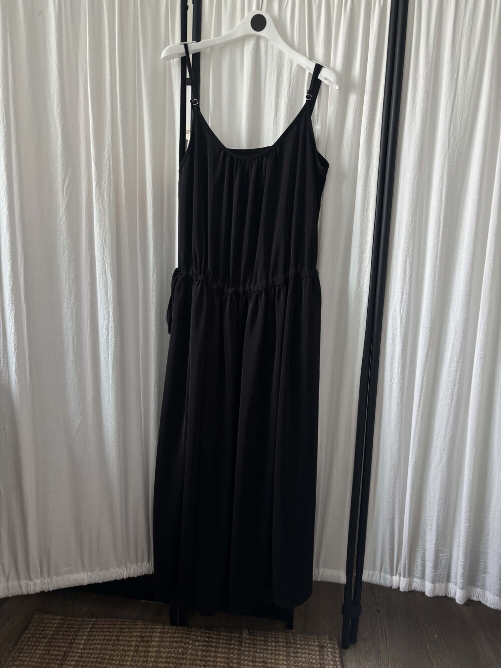 어깨끈 15(조절가능) 암홀 24 가슴 46 힙 53 밑단 112 총장 123