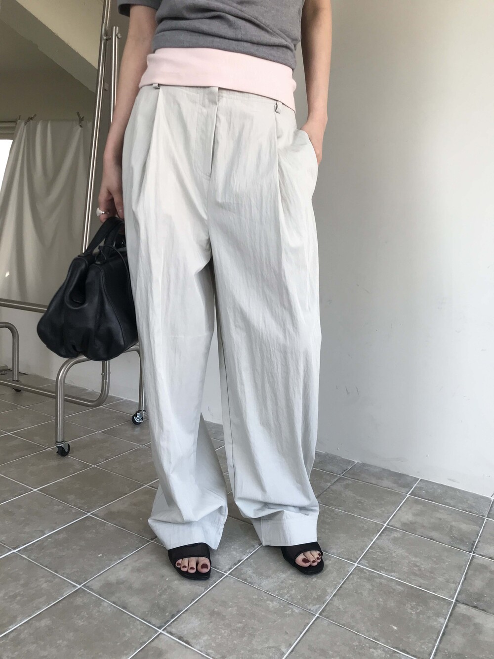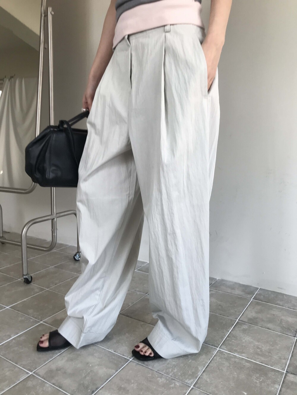 M 허리 36 밑위 39 힙 50 허벅지 30.5 밑단 26.5 총장 106