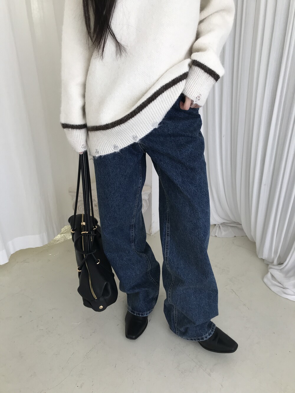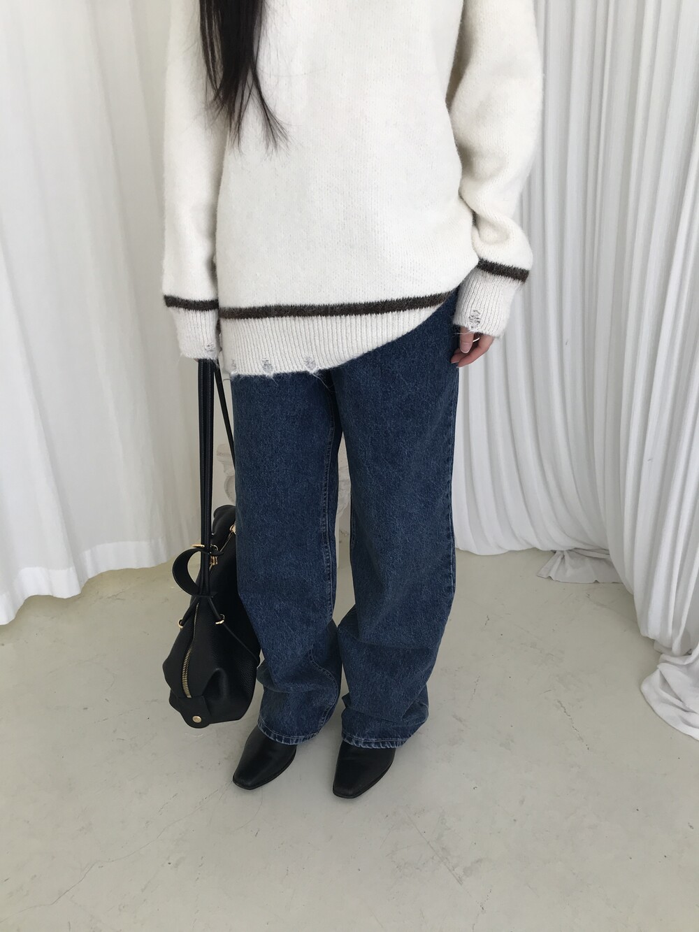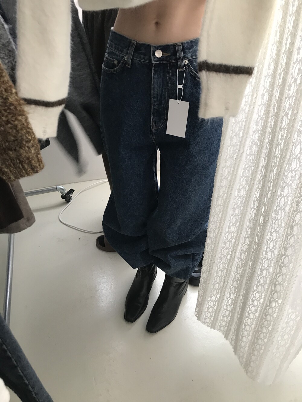 S: 허리 32 밑위 33 힙 48.5 허벅지 29.5 밑단 23.5 총장 103