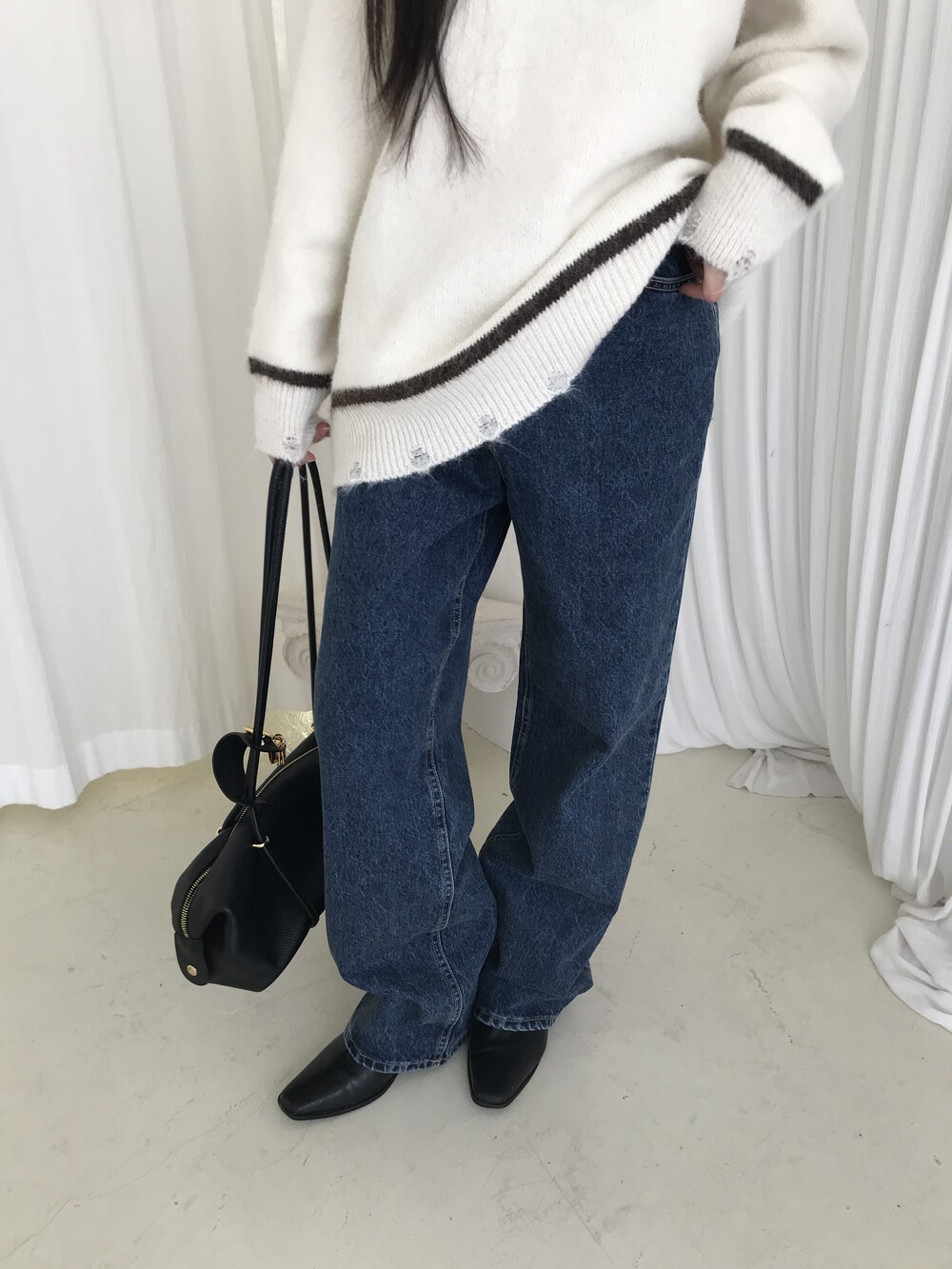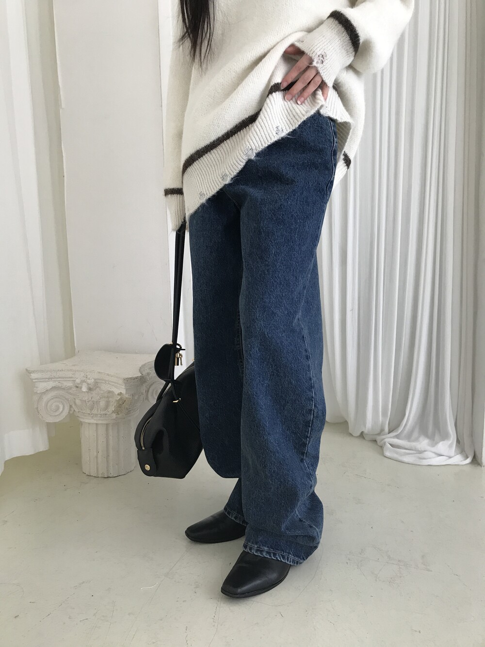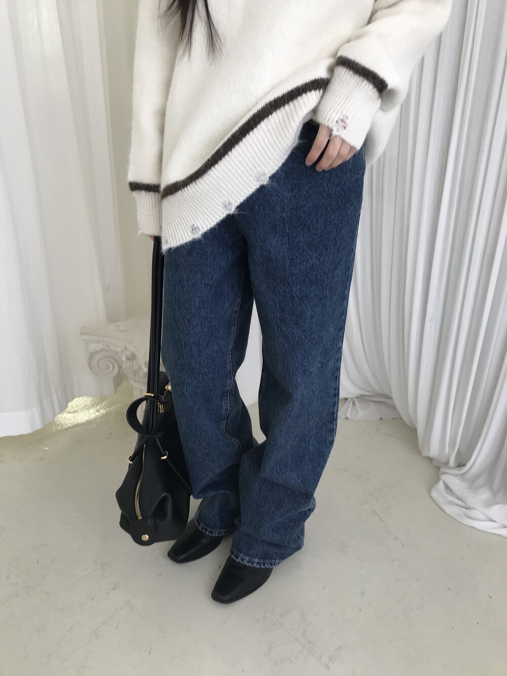 S: 허리 32 밑위 33 힙 48.5 허벅지 29.5 밑단 23.5 총장 103