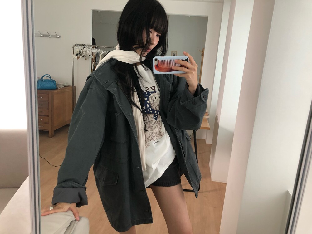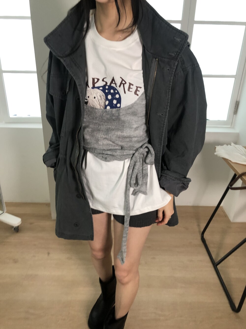 어깨 52 가슴 55 소매 57.5 소매끝단 18 밑단 62 총장 82