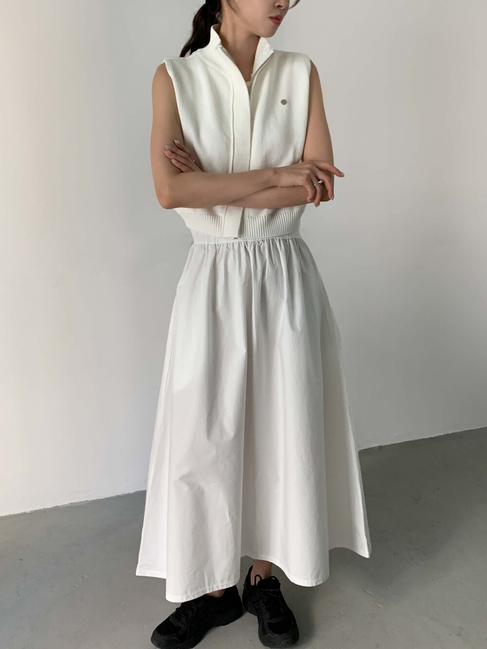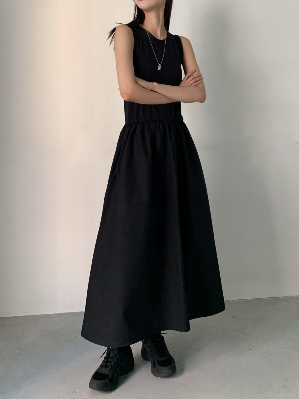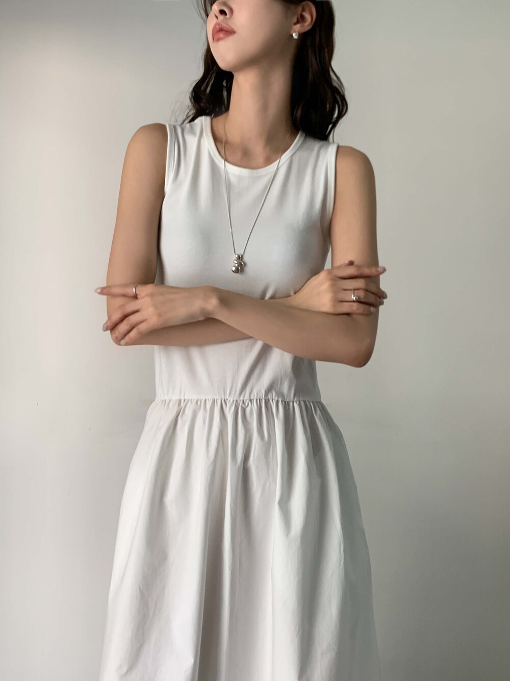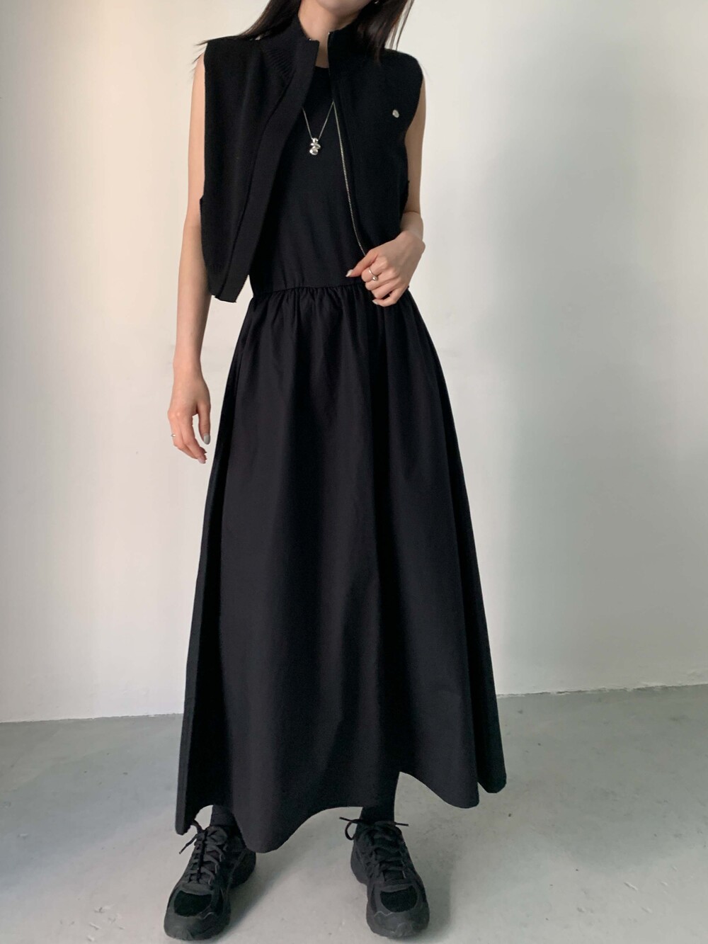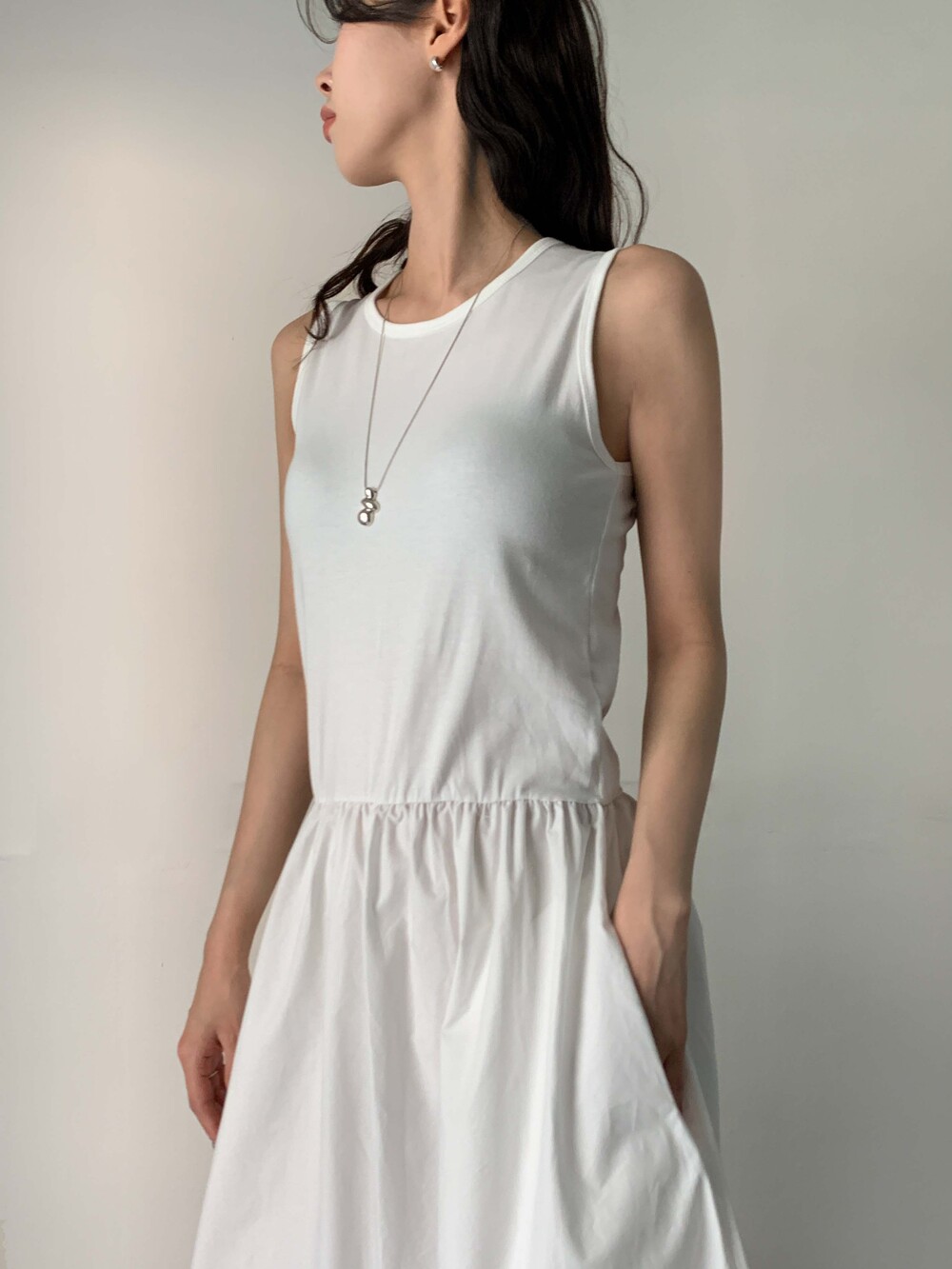 마치 기본 슬리브리스 탑에 롱 스커트를 매치한 듯한 느낌을