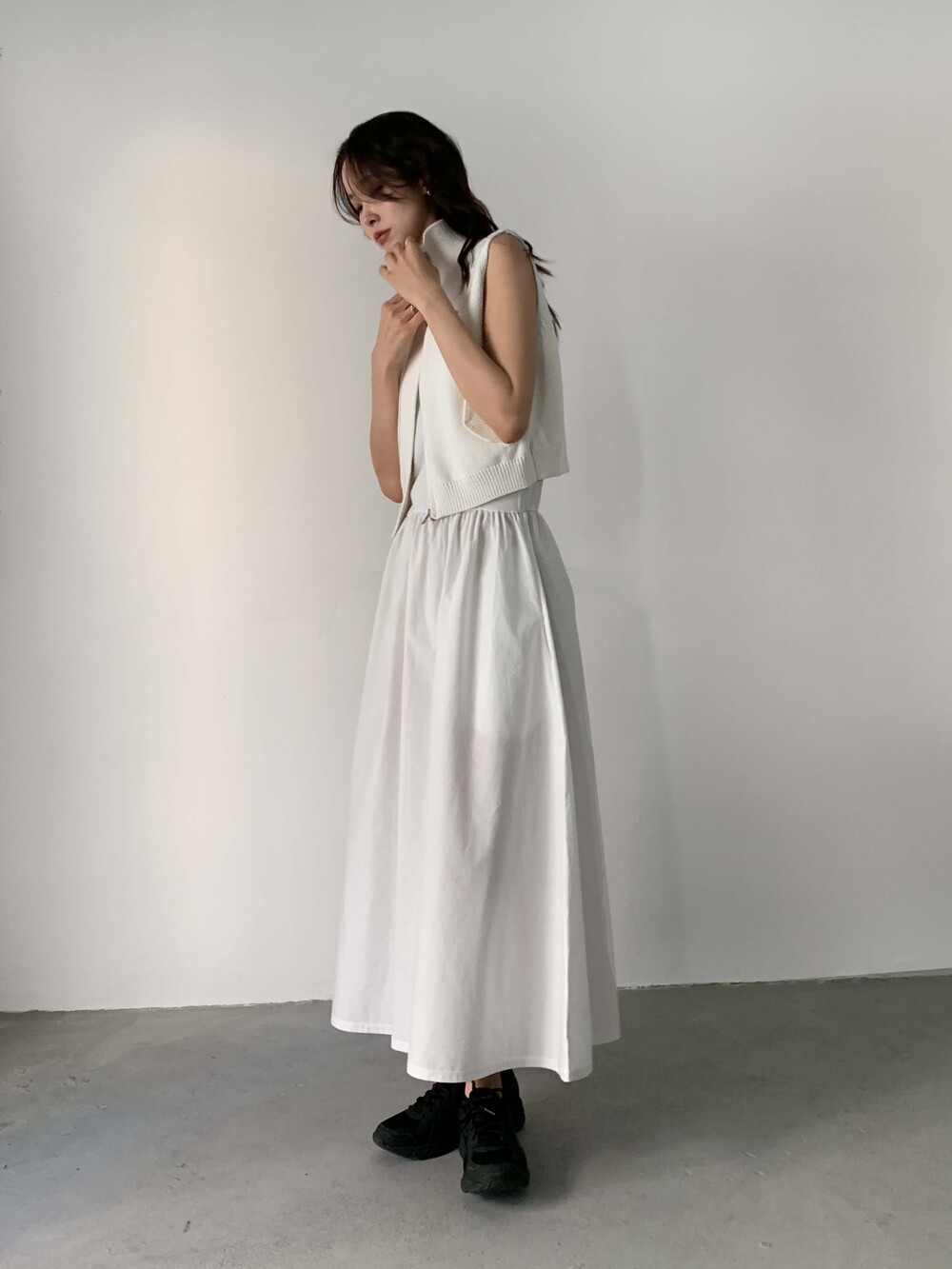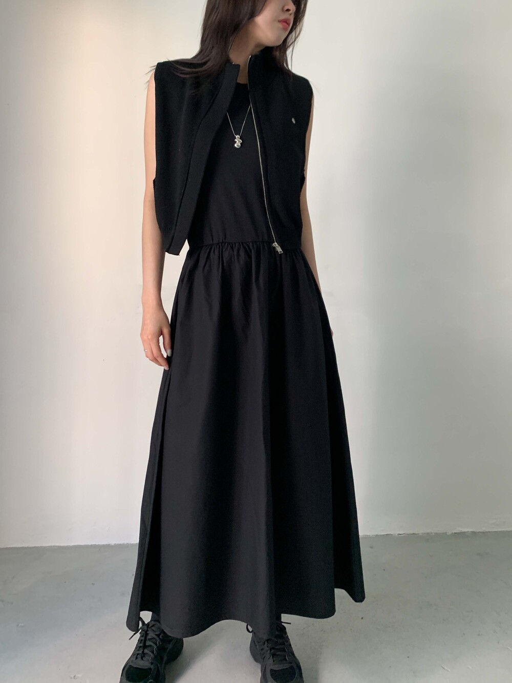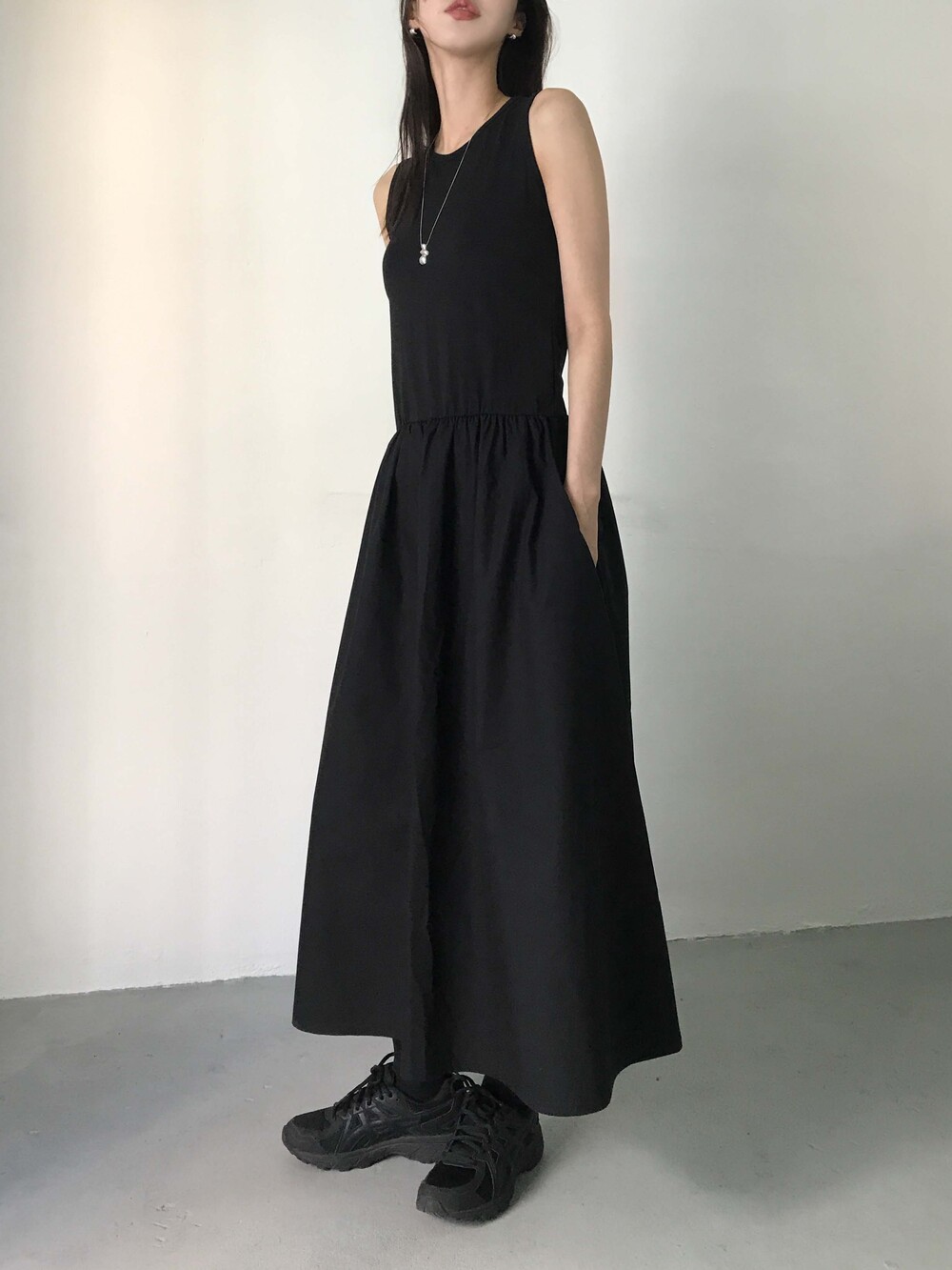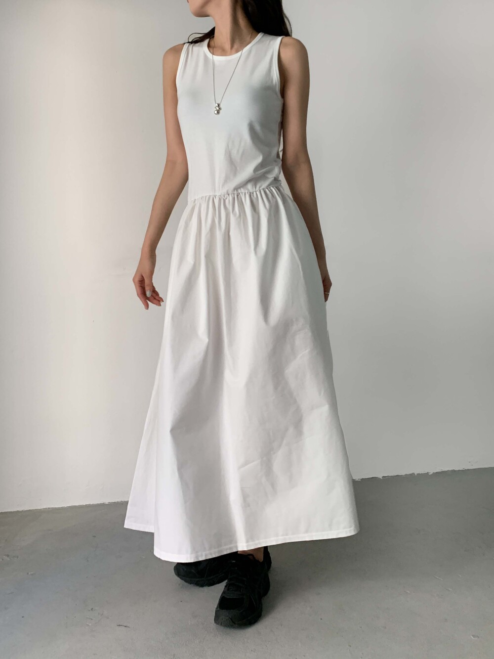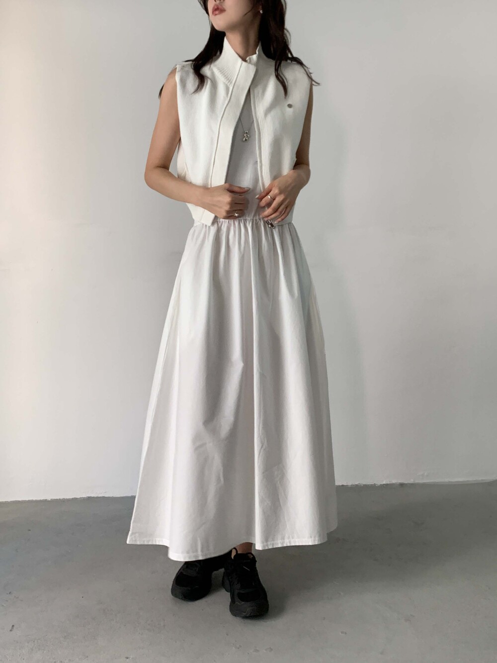 마치 기본 슬리브리스 탑에 롱 스커트를 매치한 듯한 느낌을