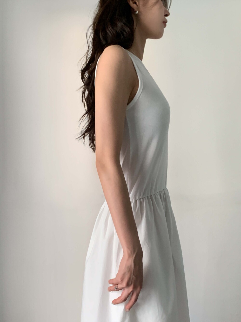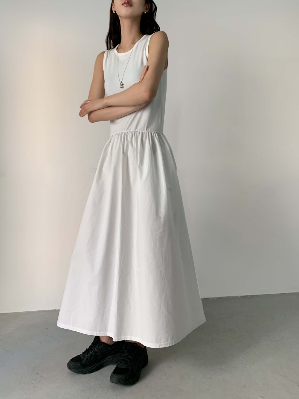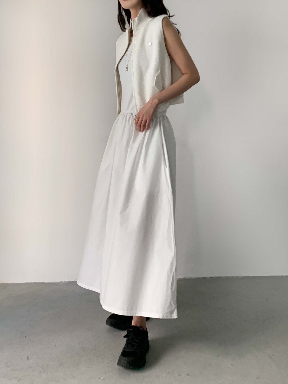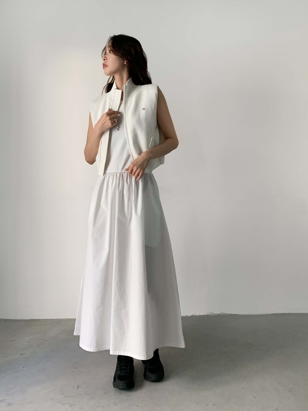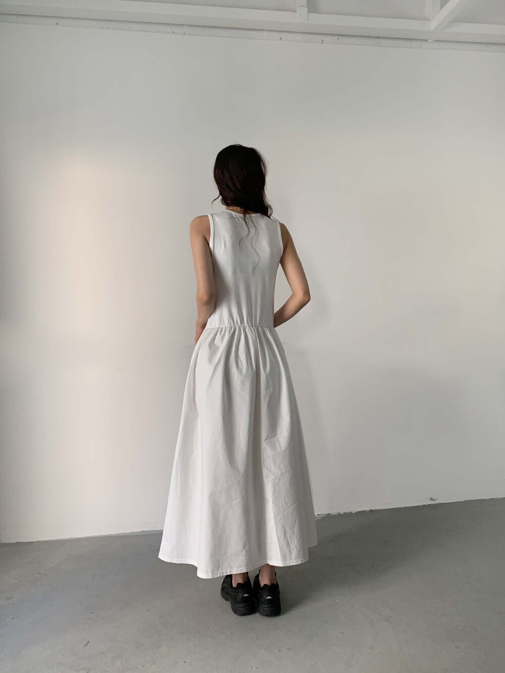 마치 기본 슬리브리스 탑에 롱 스커트를 매치한 듯한 느낌을