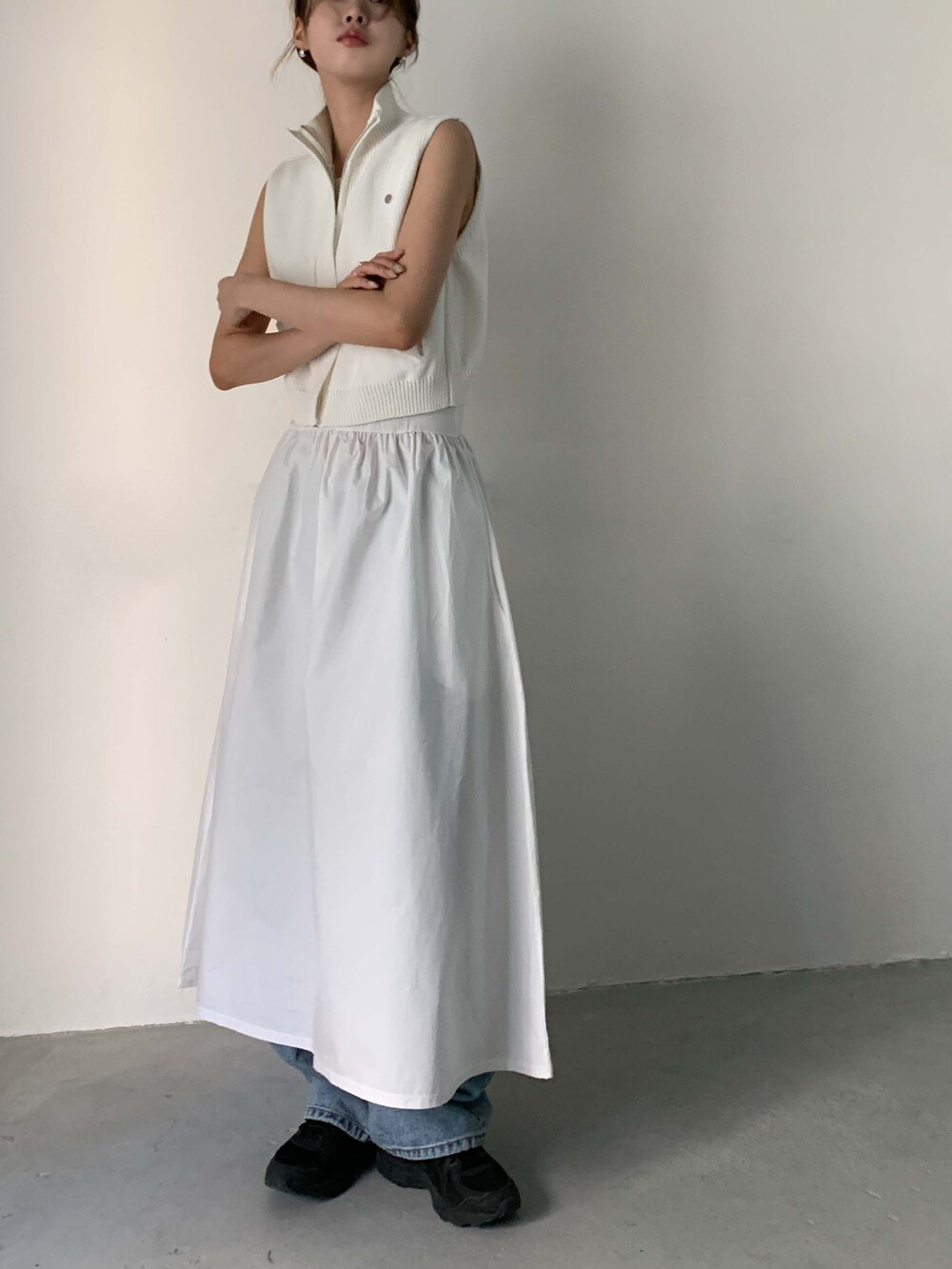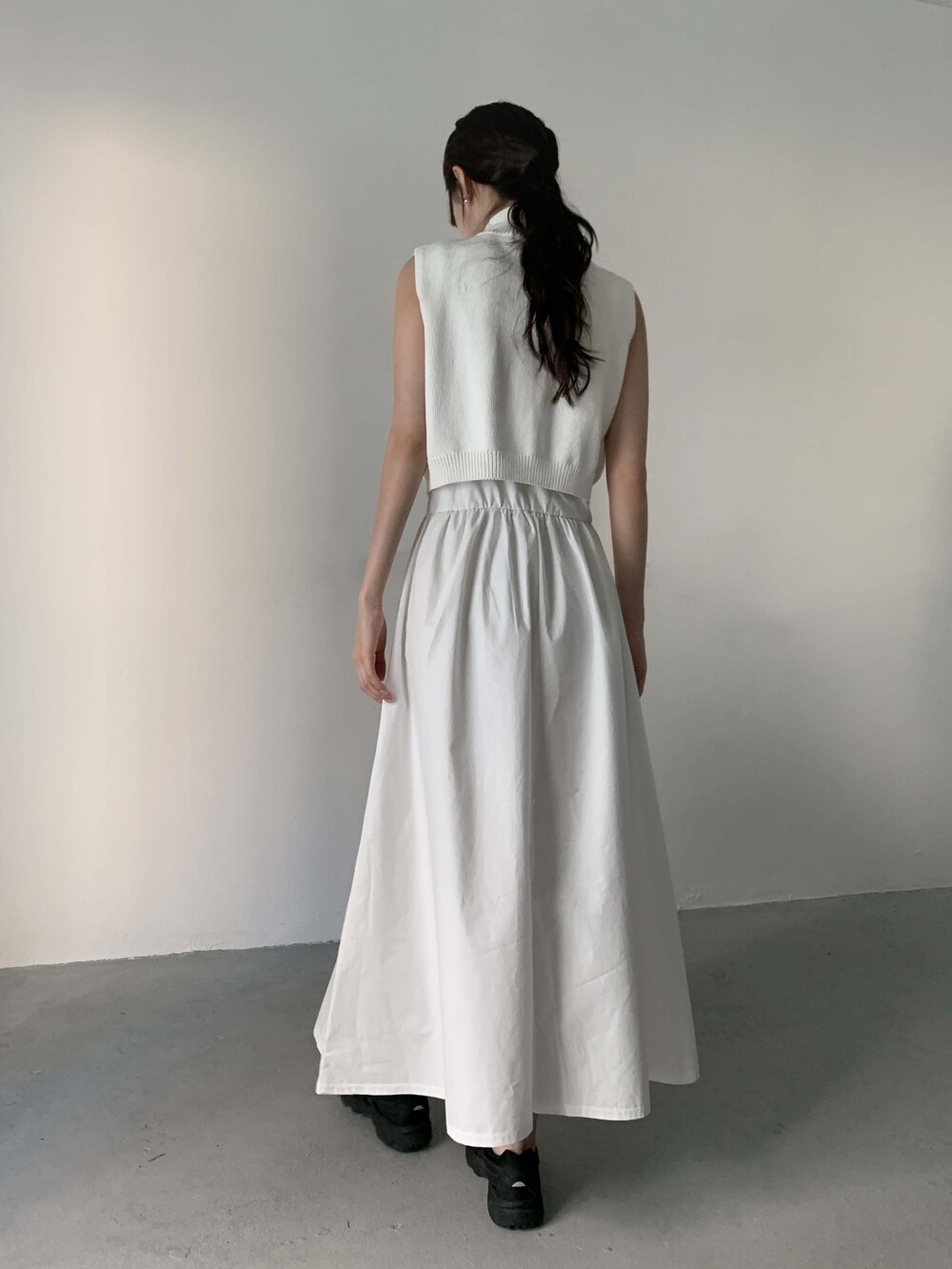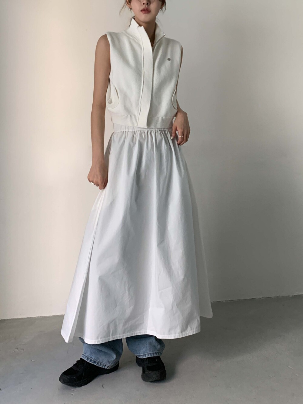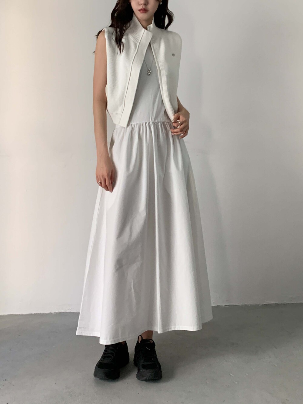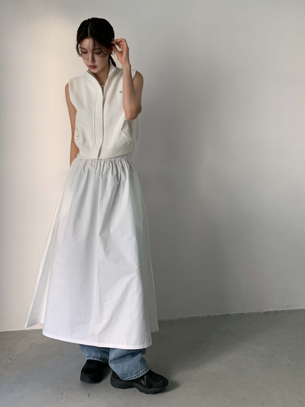 마치 기본 슬리브리스 탑에 롱 스커트를 매치한 듯한 느낌을