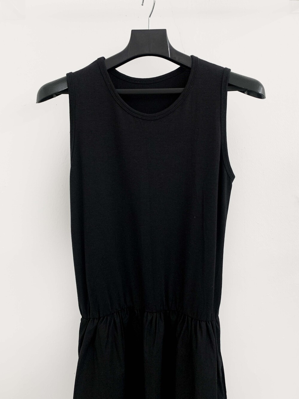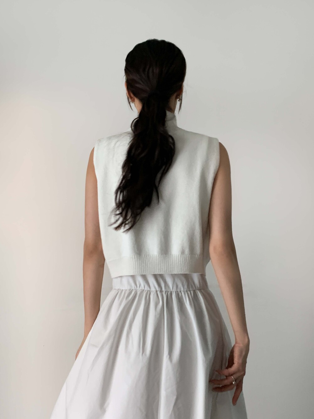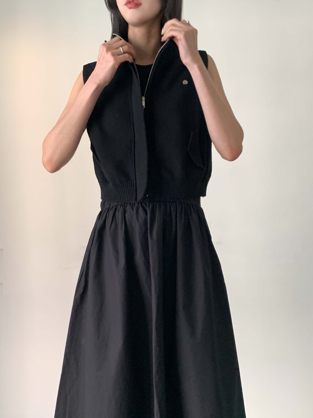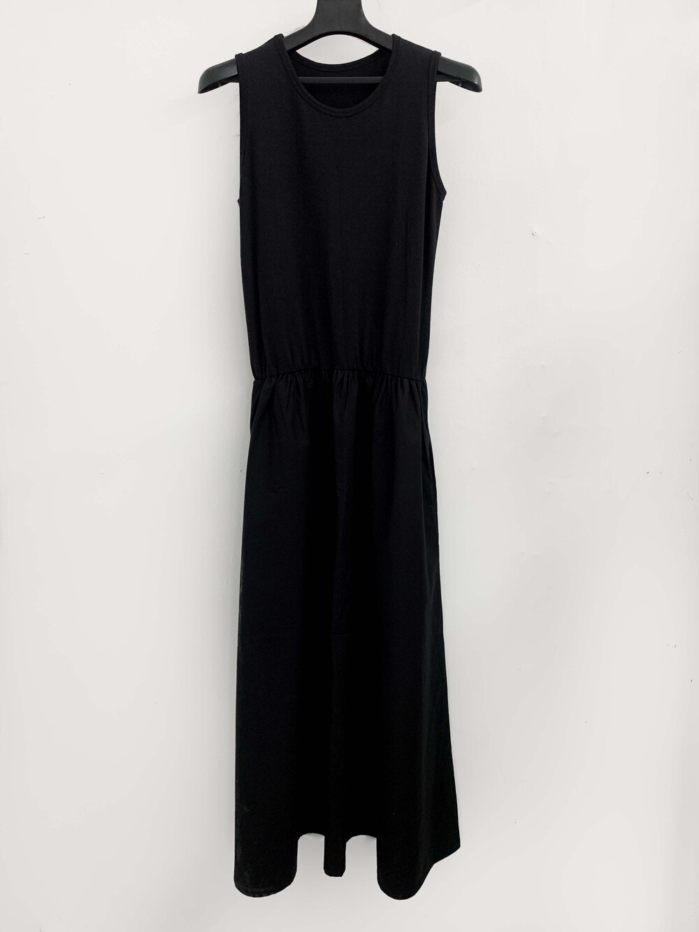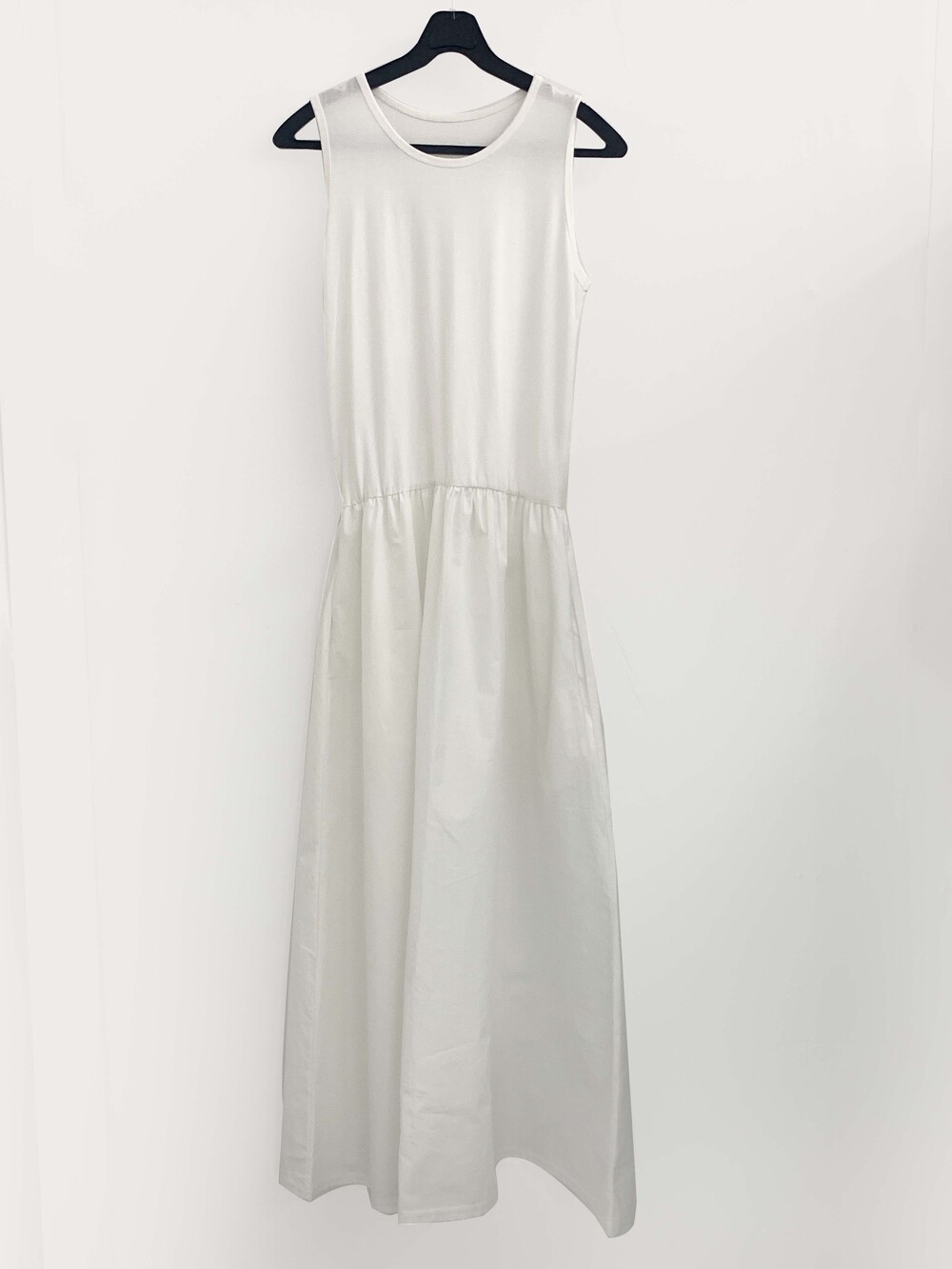 마치 기본 슬리브리스 탑에 롱 스커트를 매치한 듯한 느낌을