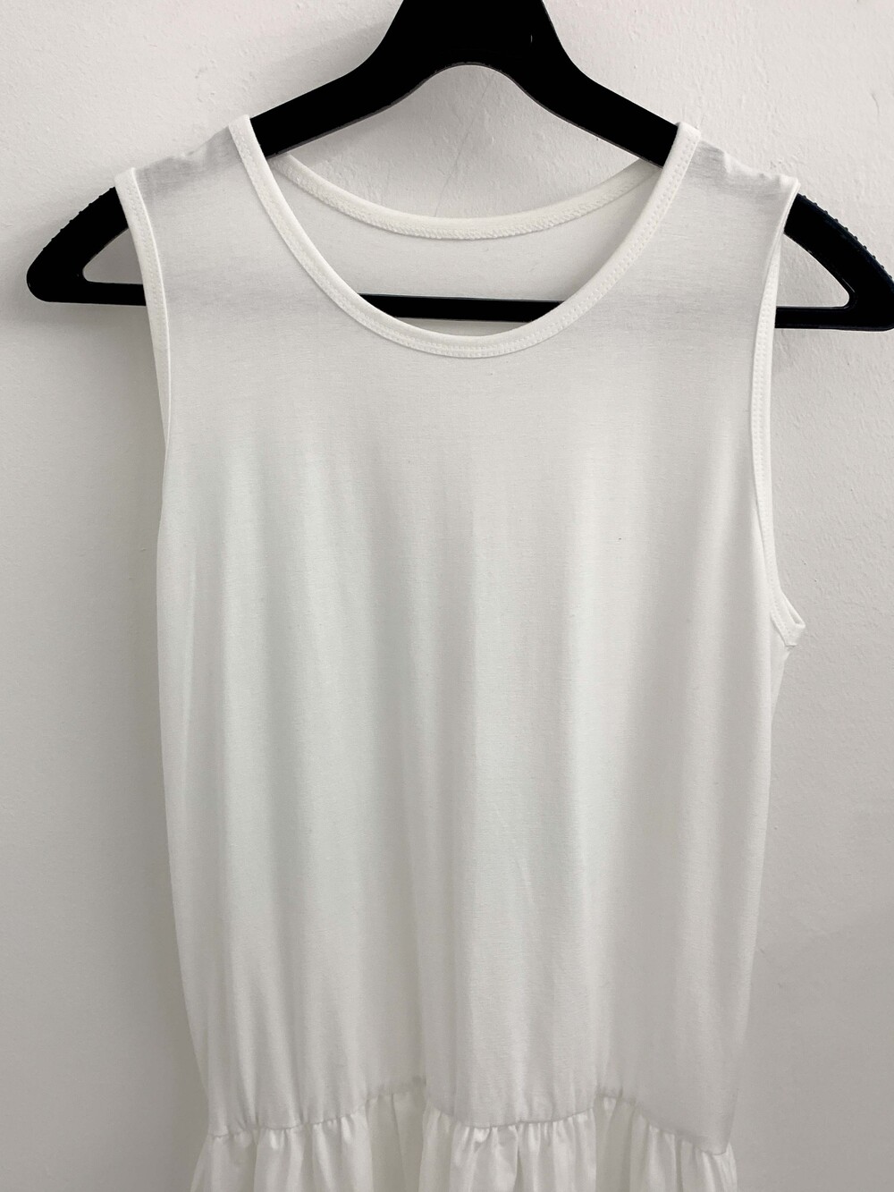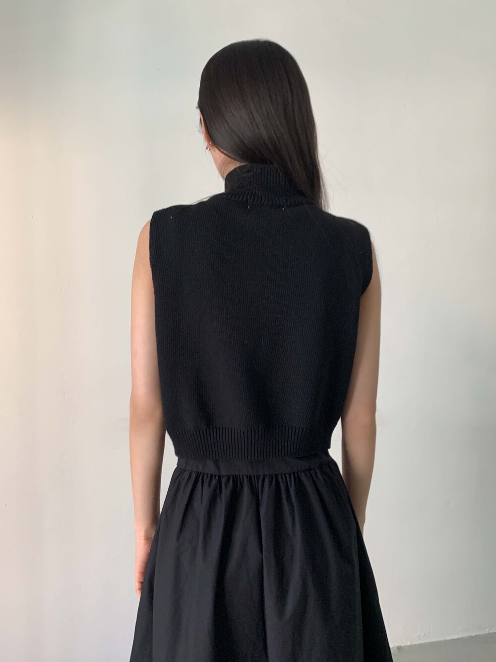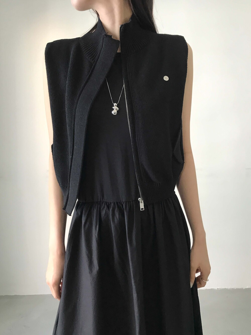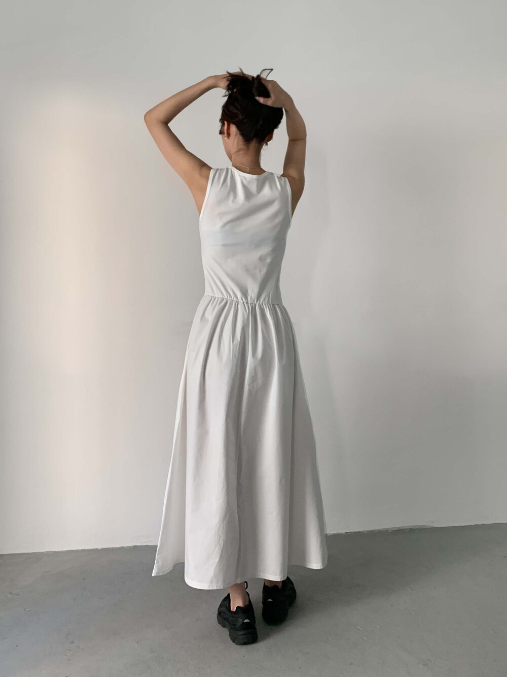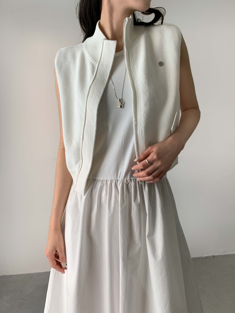 마치 기본 슬리브리스 탑에 롱 스커트를 매치한 듯한 느낌을