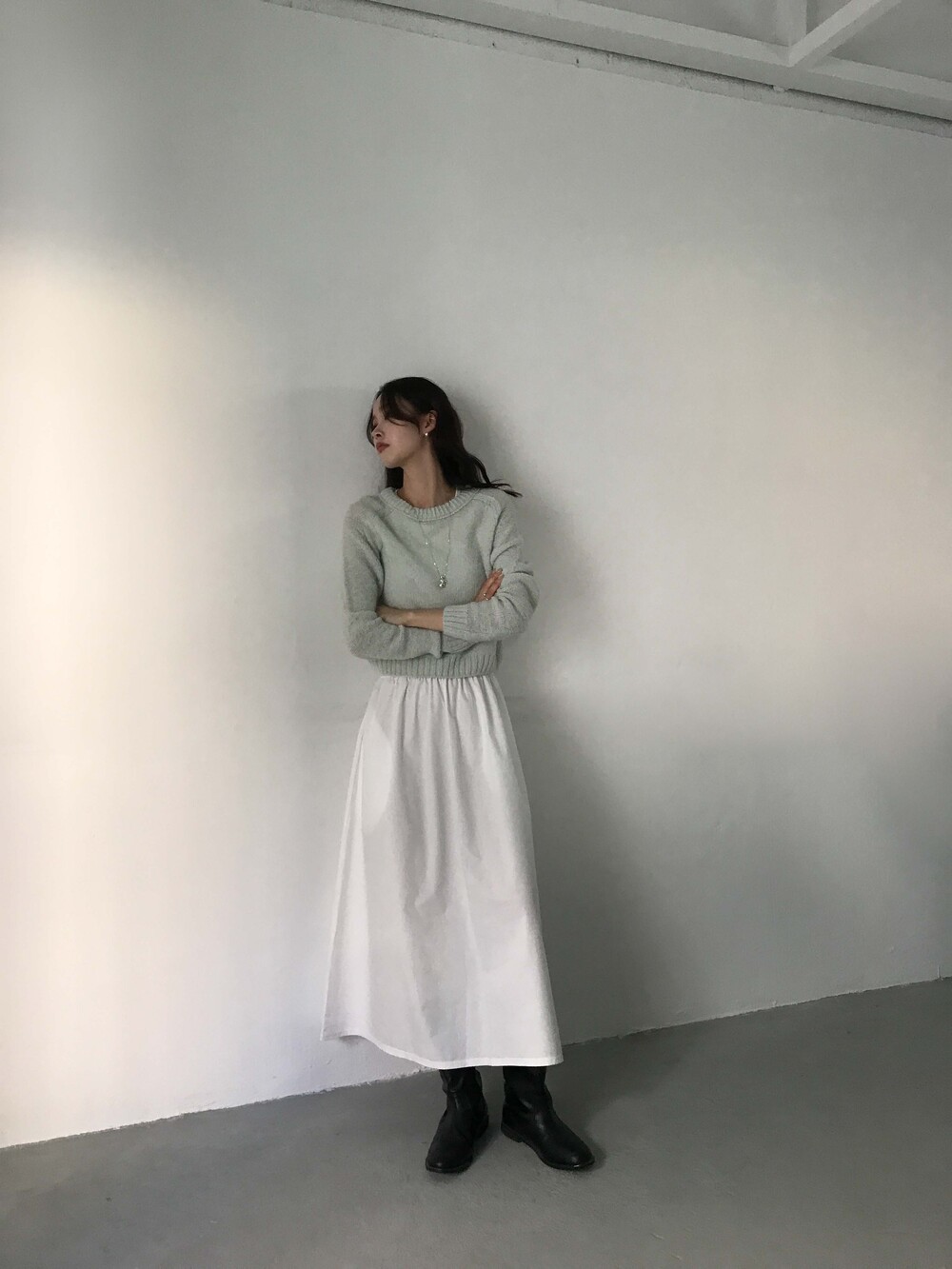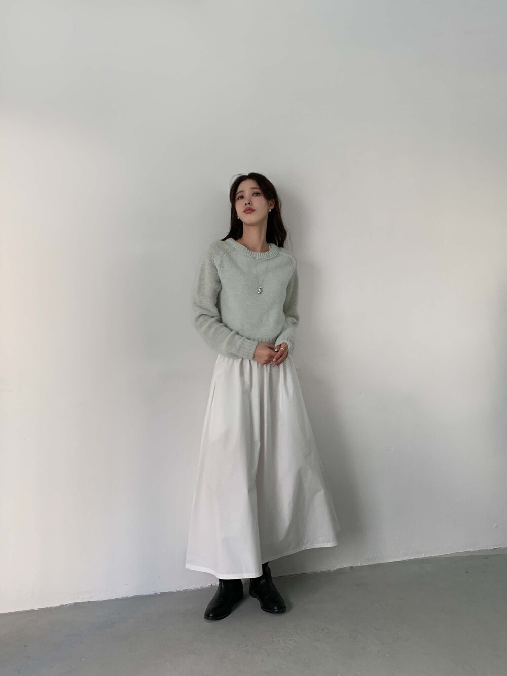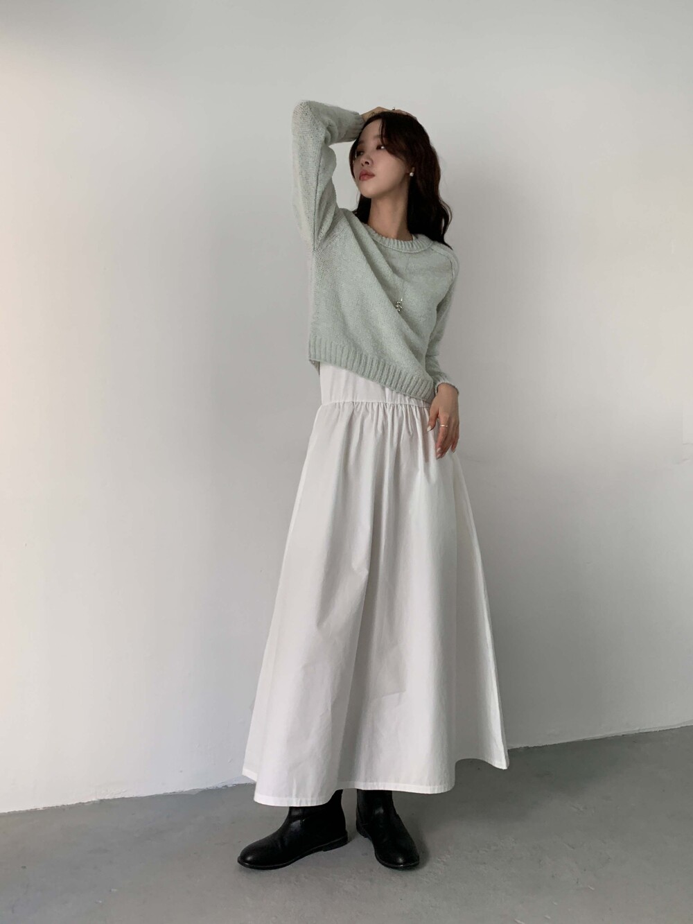 티셔츠나 니트와 매치하였을 땐 편안한 스커트를 매치한 듯,