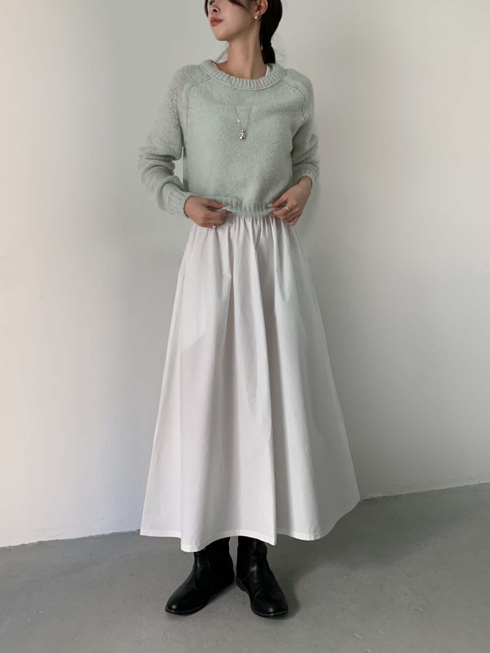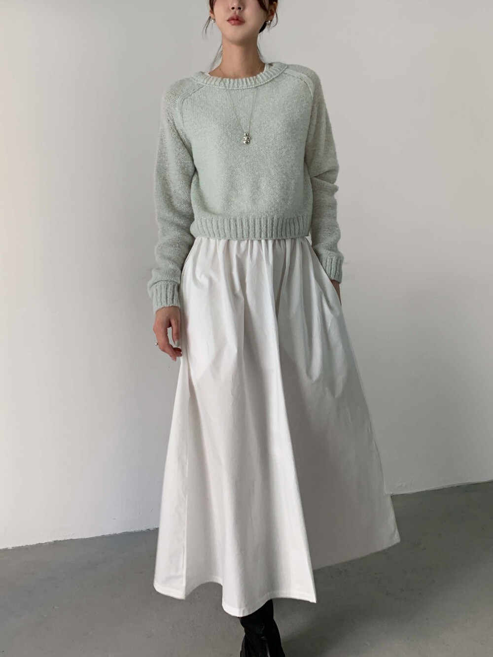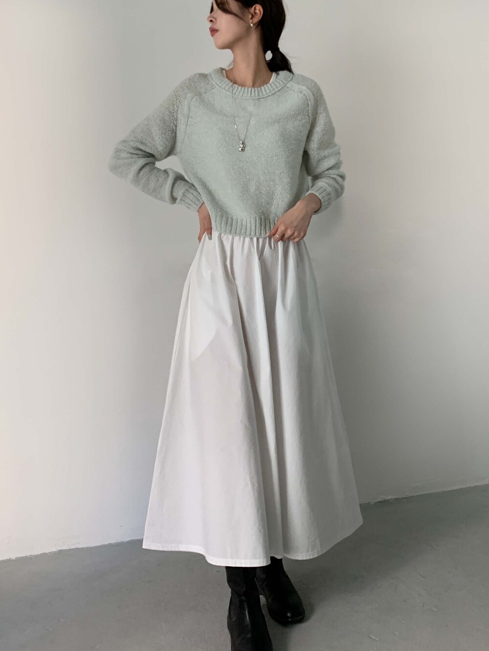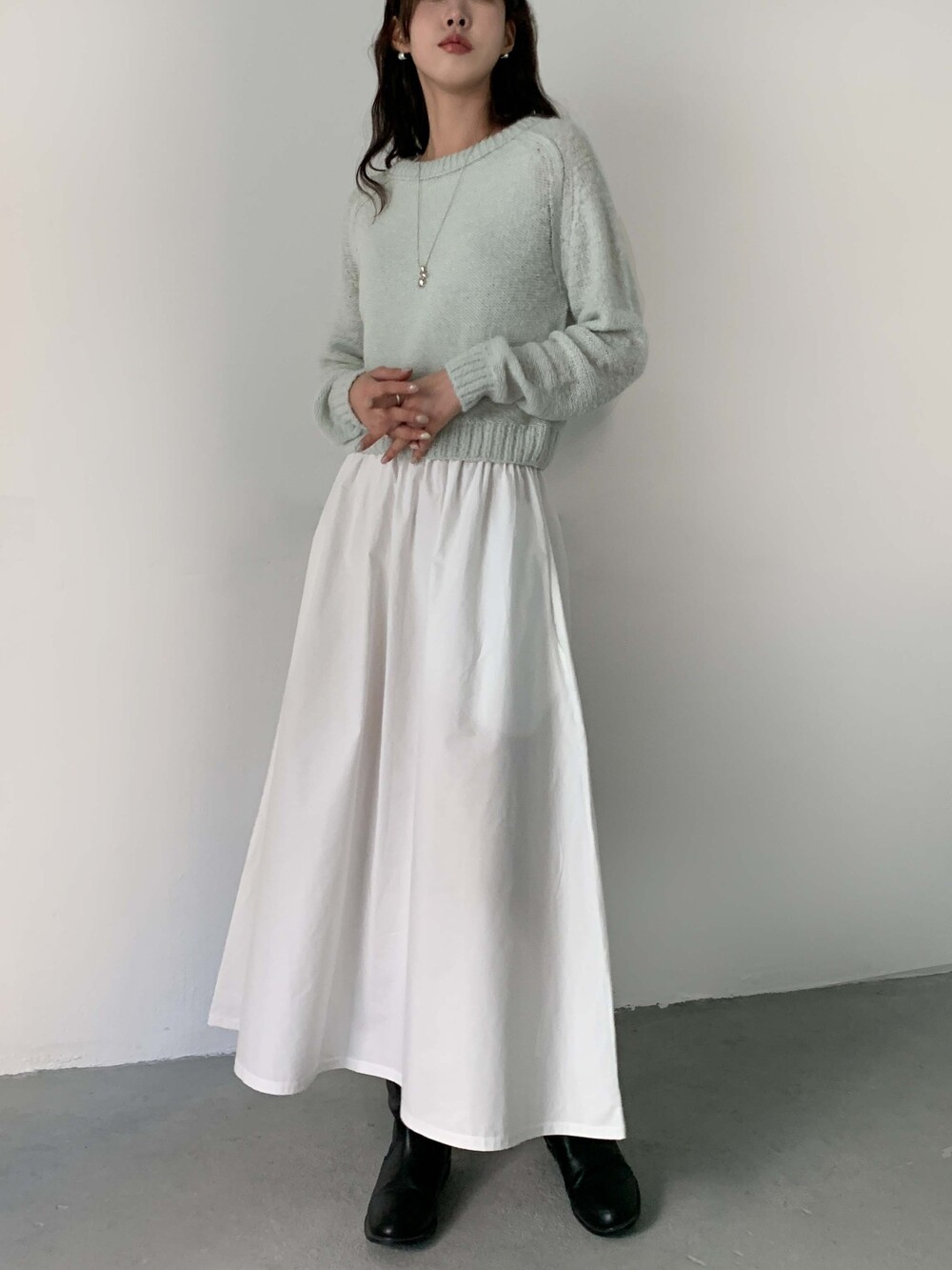 티셔츠나 니트와 매치하였을 땐 편안한 스커트를 매치한 듯,