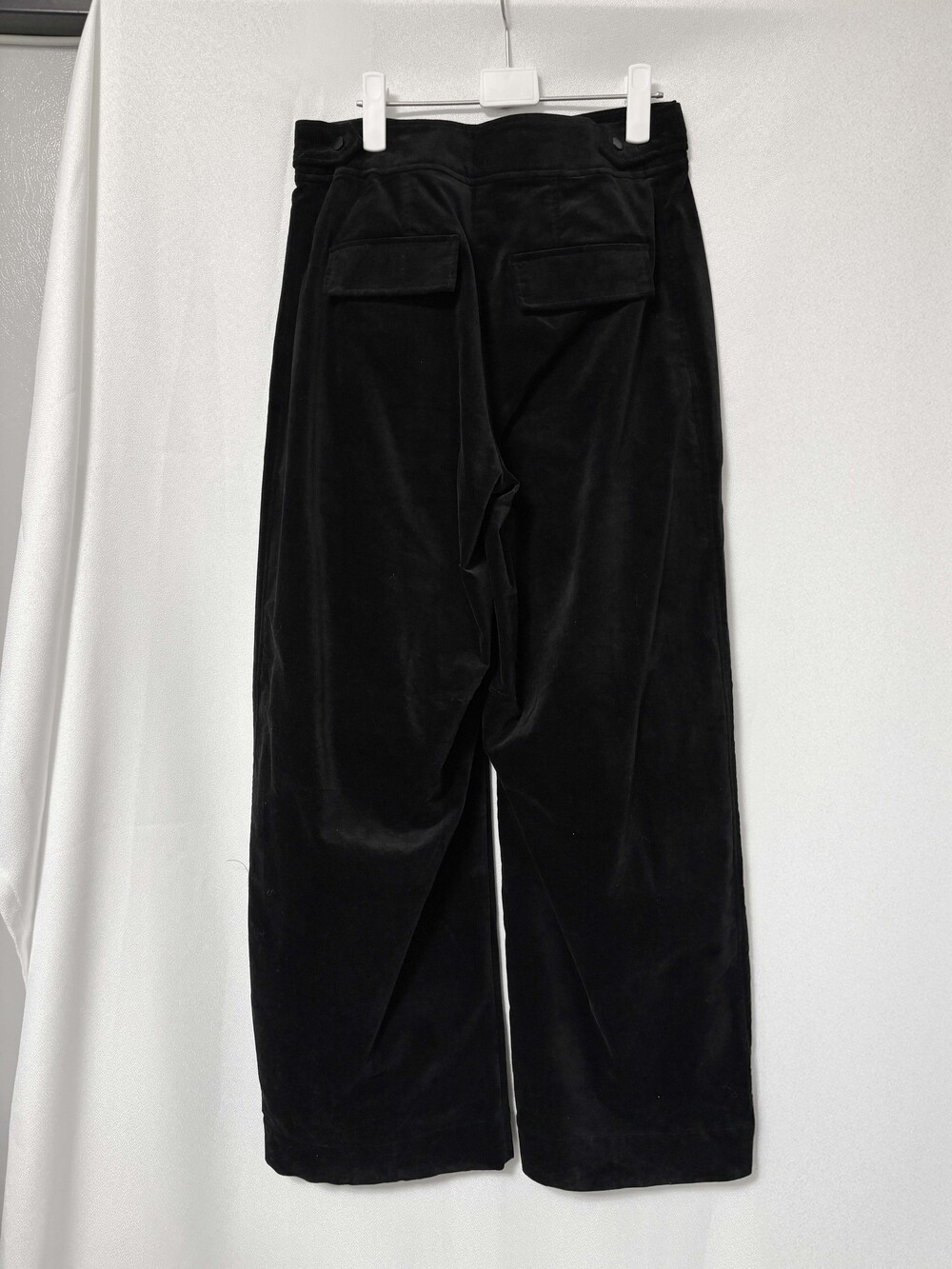 M: 허리 37.5 밑위 32 힙 54 허벅지 34 밑단 28.5 총장 103.5