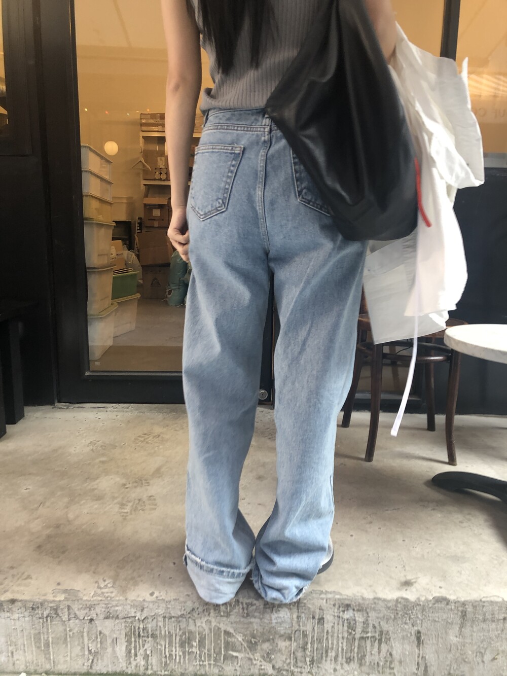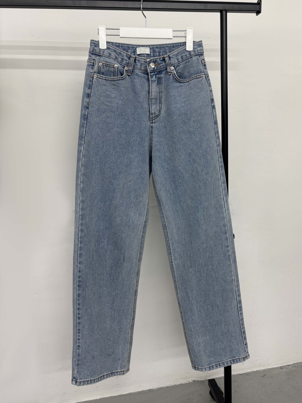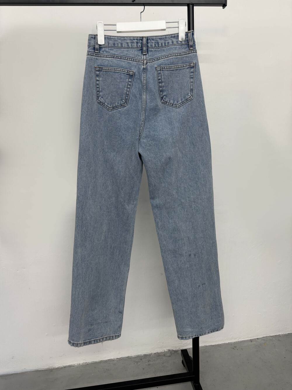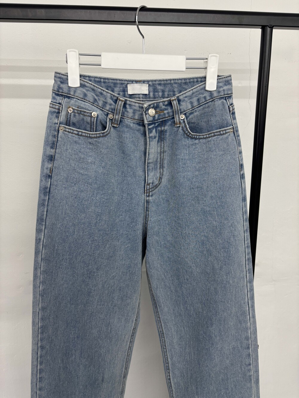 S: 허리 34.5 밑위 33 허벅지 26 힙 50 밑단 22.5 총장 109.5