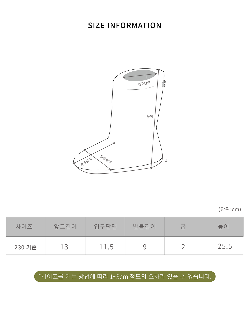 -사이즈 측정 방법에 따른 오차 범위 내 (1~3cm)