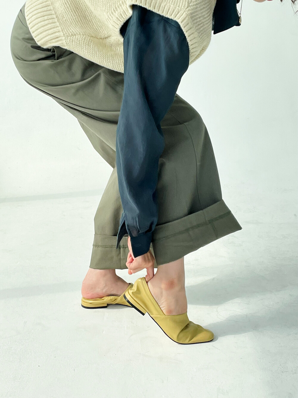 둥근 스퀘어 라인에 밴딩 주름이 잡힌 로퍼 겸 블로퍼입니다.