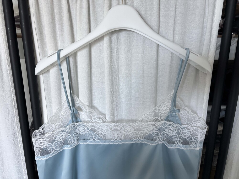 가슴 42.5 밑단 48 암홀 25 총장 51(어깨끈 포함) 어깨끈길이 12(앞쪽길이)
