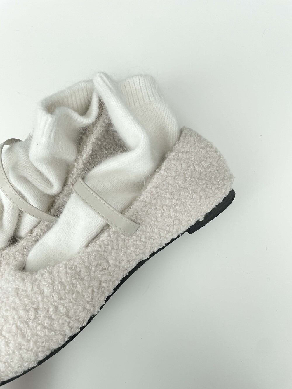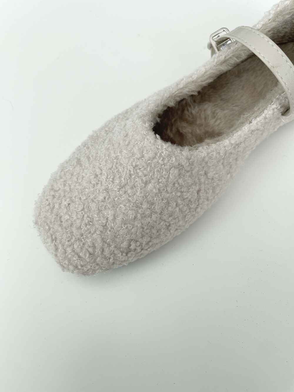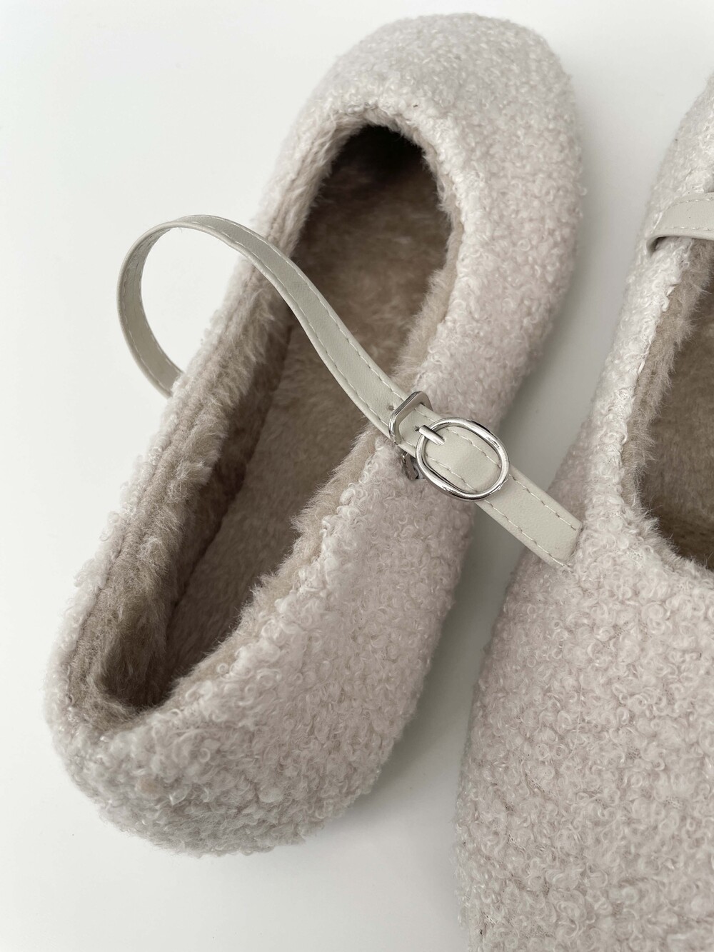 부클 소재가 돋보이는 메리 제인 플랫 슈즈