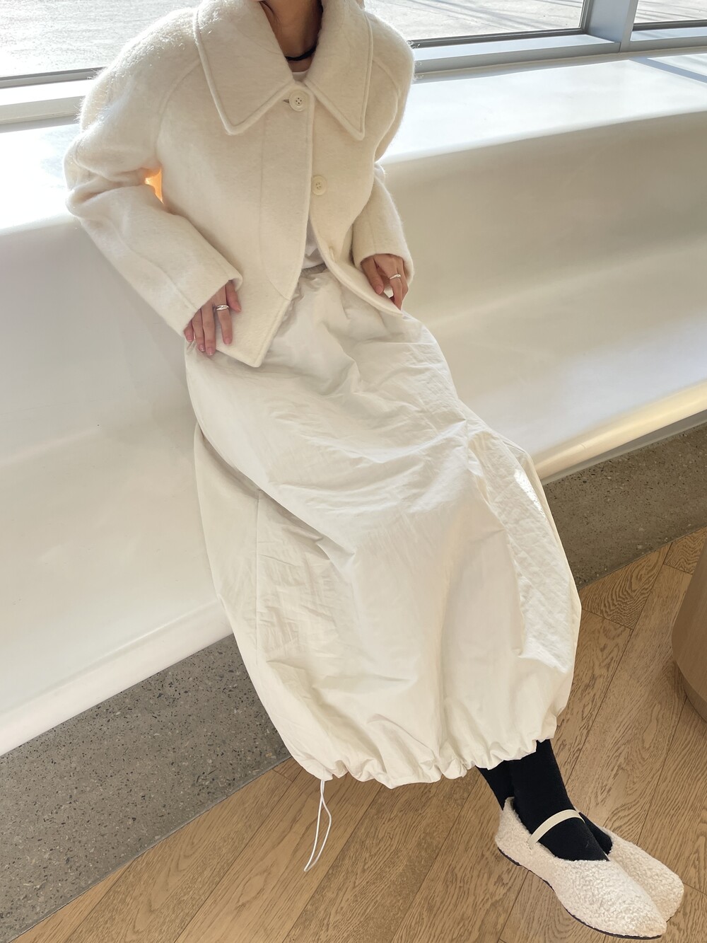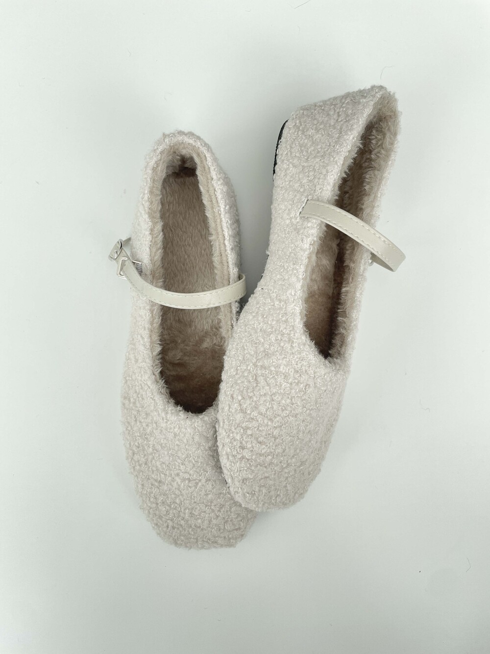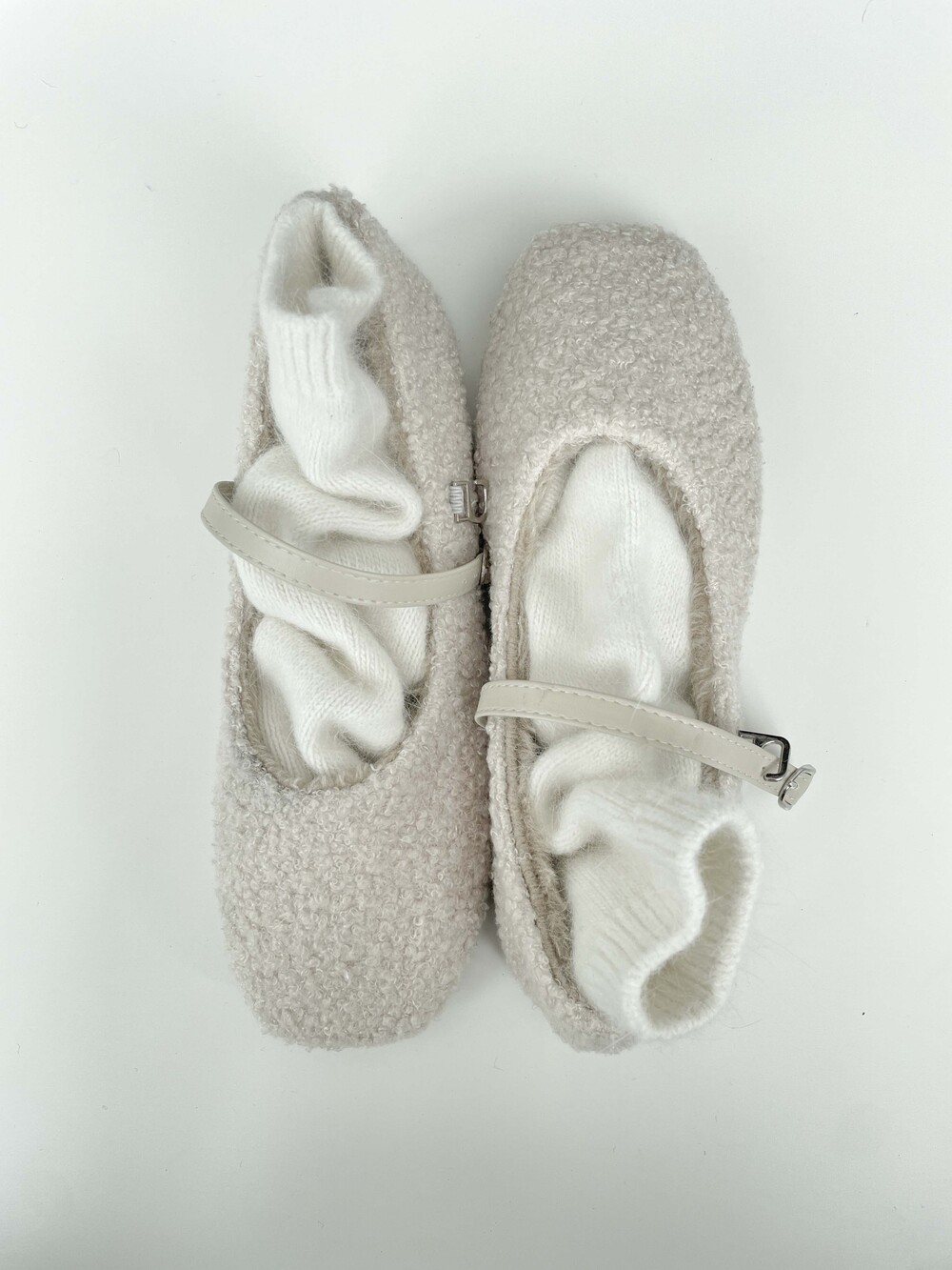 부클 소재가 돋보이는 메리 제인 플랫 슈즈