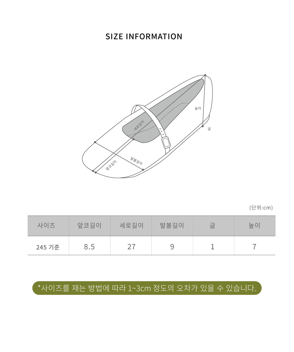 -사이즈 측정 방법에 따른 오차 범위 내 (1~3cm)