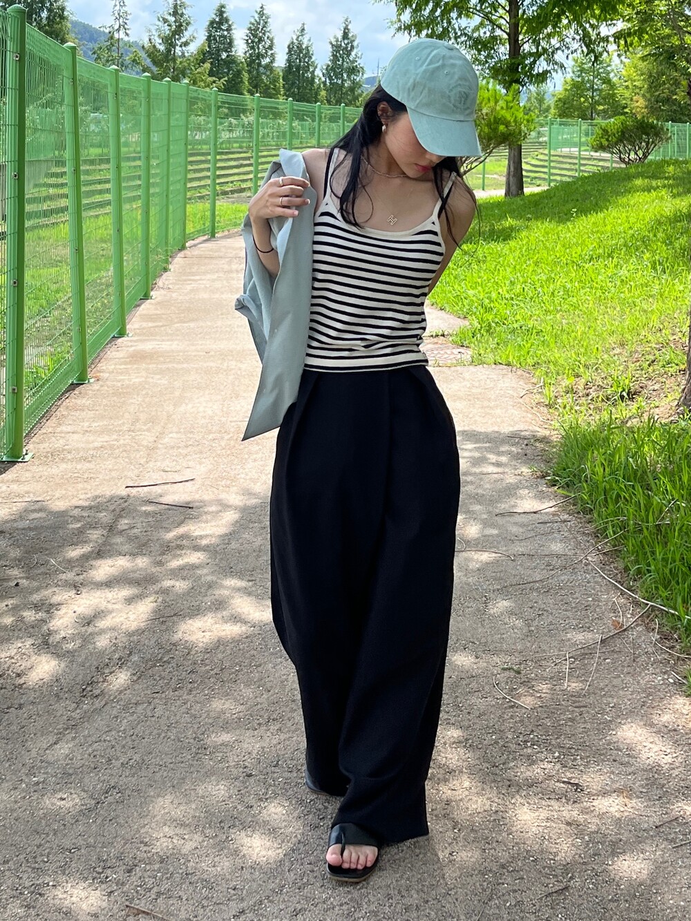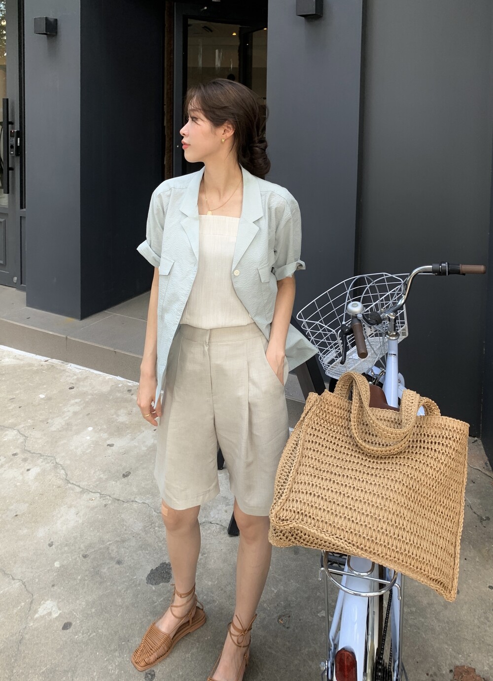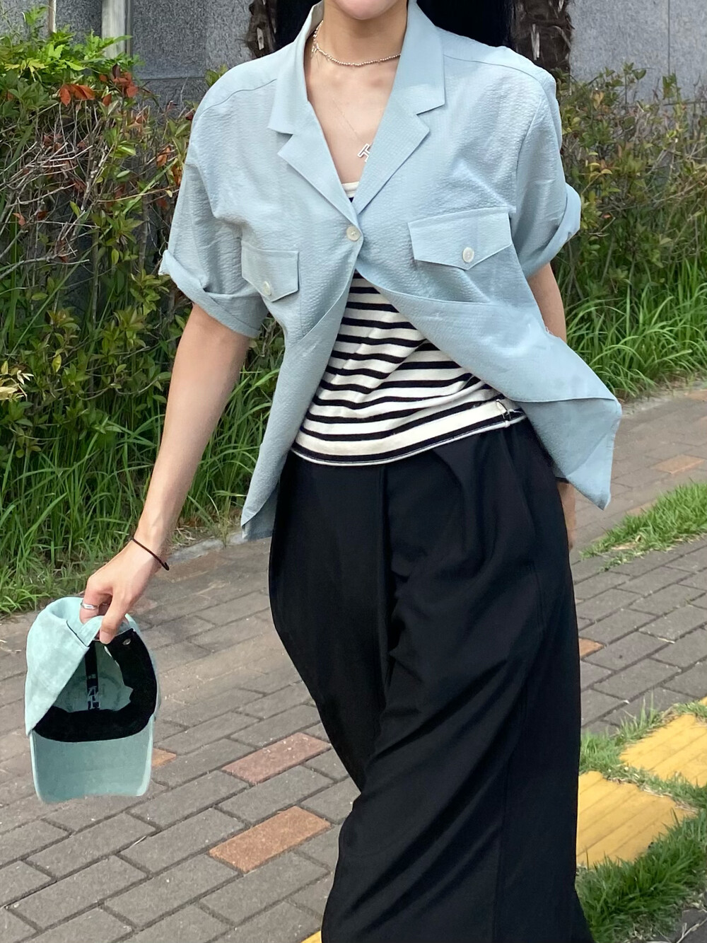 민트 컬러는 아우터로 사용하여 색감으로 포인트를 주기 좋아