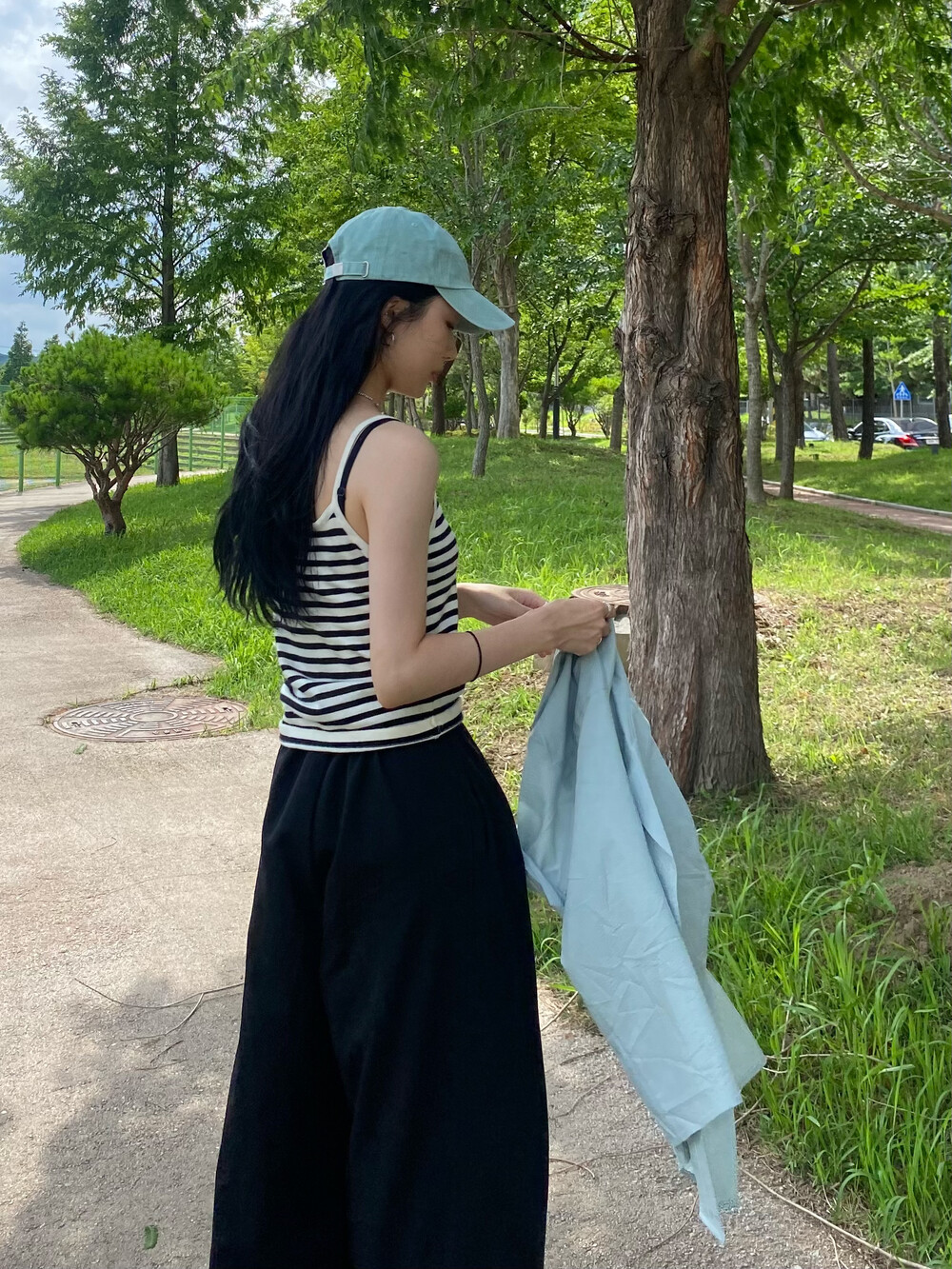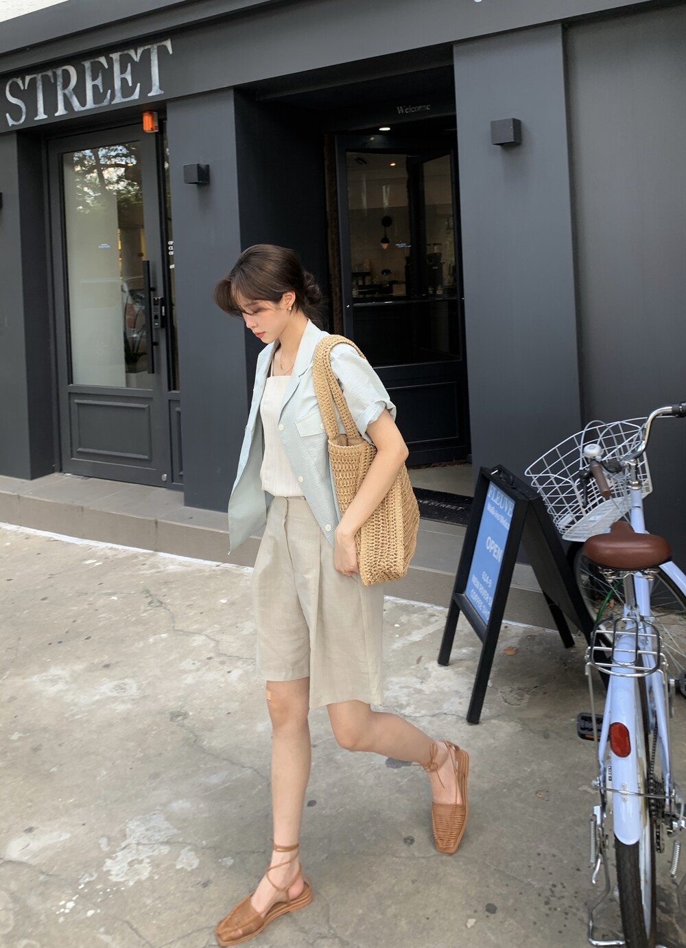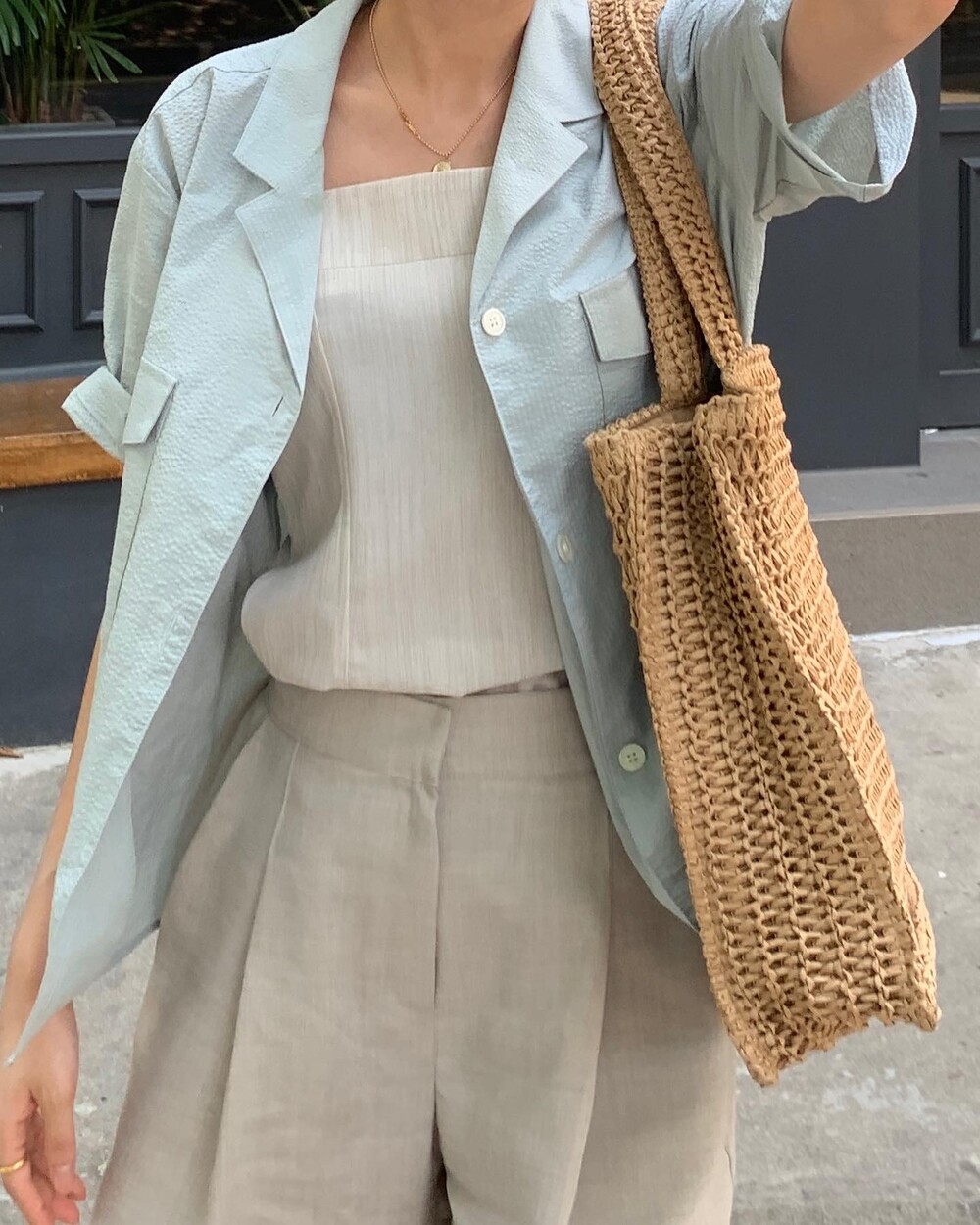 민트 컬러는 아우터로 사용하여 색감으로 포인트를 주기 좋아