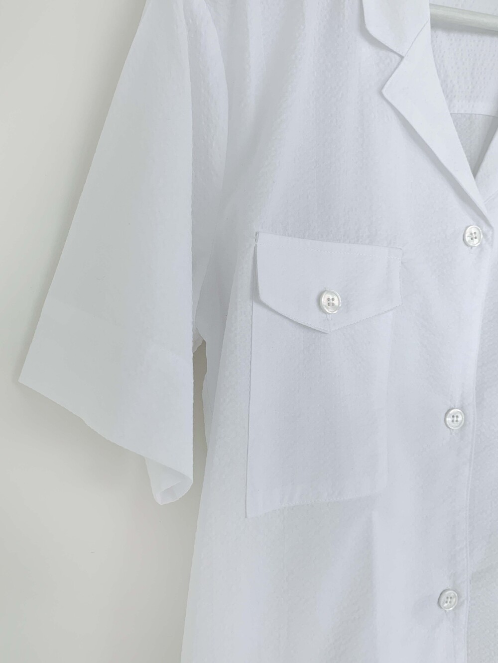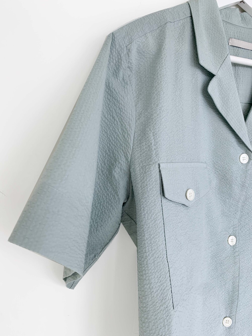 시어서커 원단의 질감을 잘 살린 얇은 코튼 셔츠