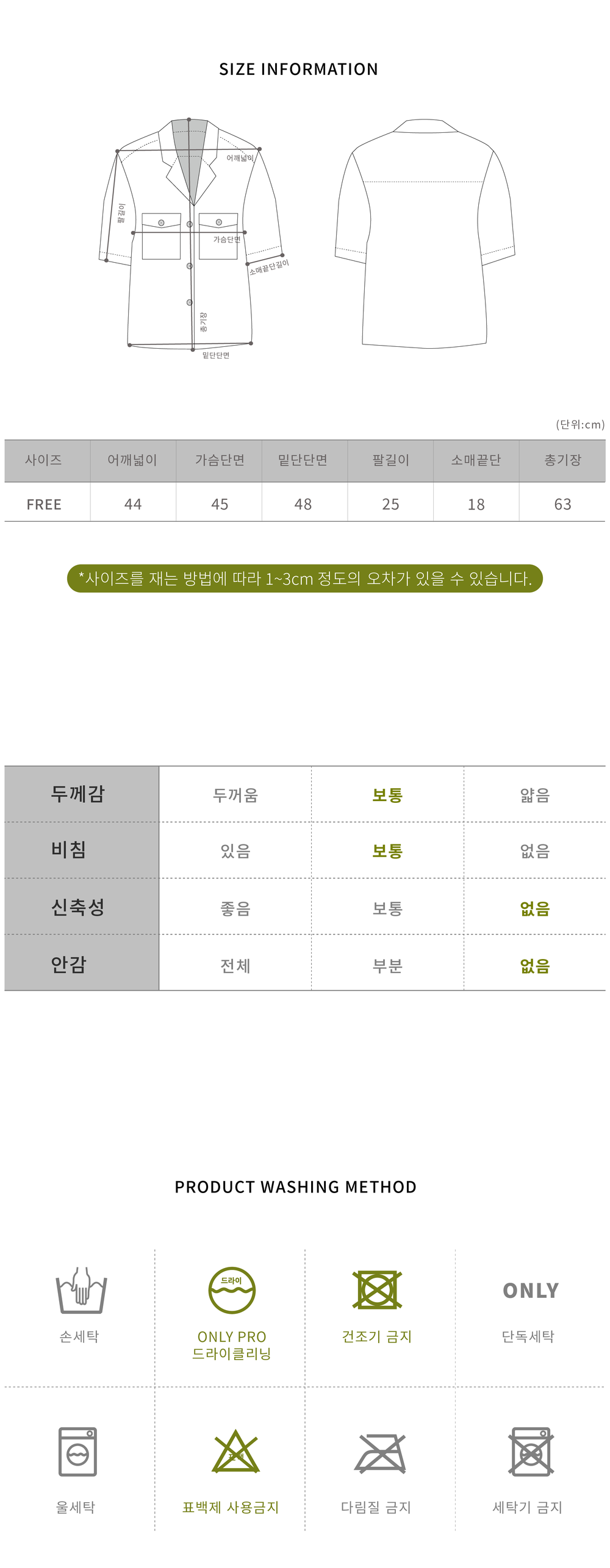 -사이즈 측정 방법에 따른 오차 범위 내 (1~3cm)