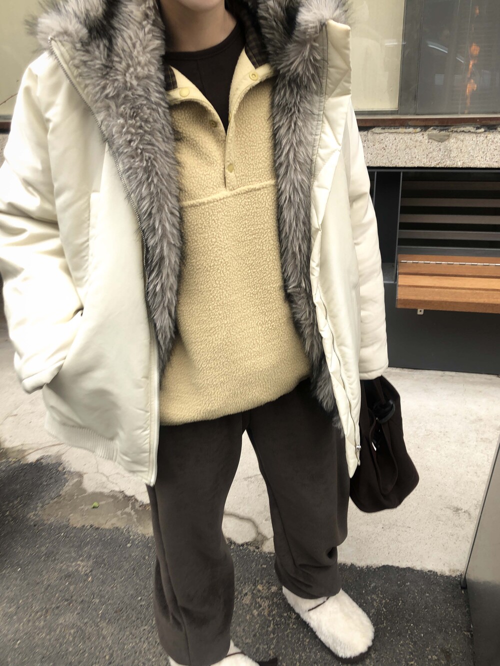 어깨 58 가슴 60 밑단 55(밑단양쪽 스트링 조절0)소매 58 소매끝단 12 총장 67