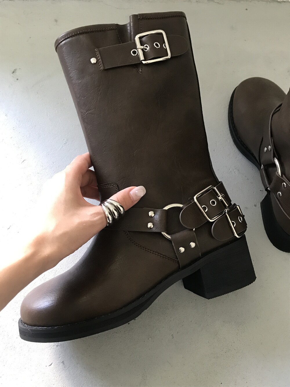 어느 룩에나 매치하기 쉬우며 포인트 주기 좋은 미들 부츠