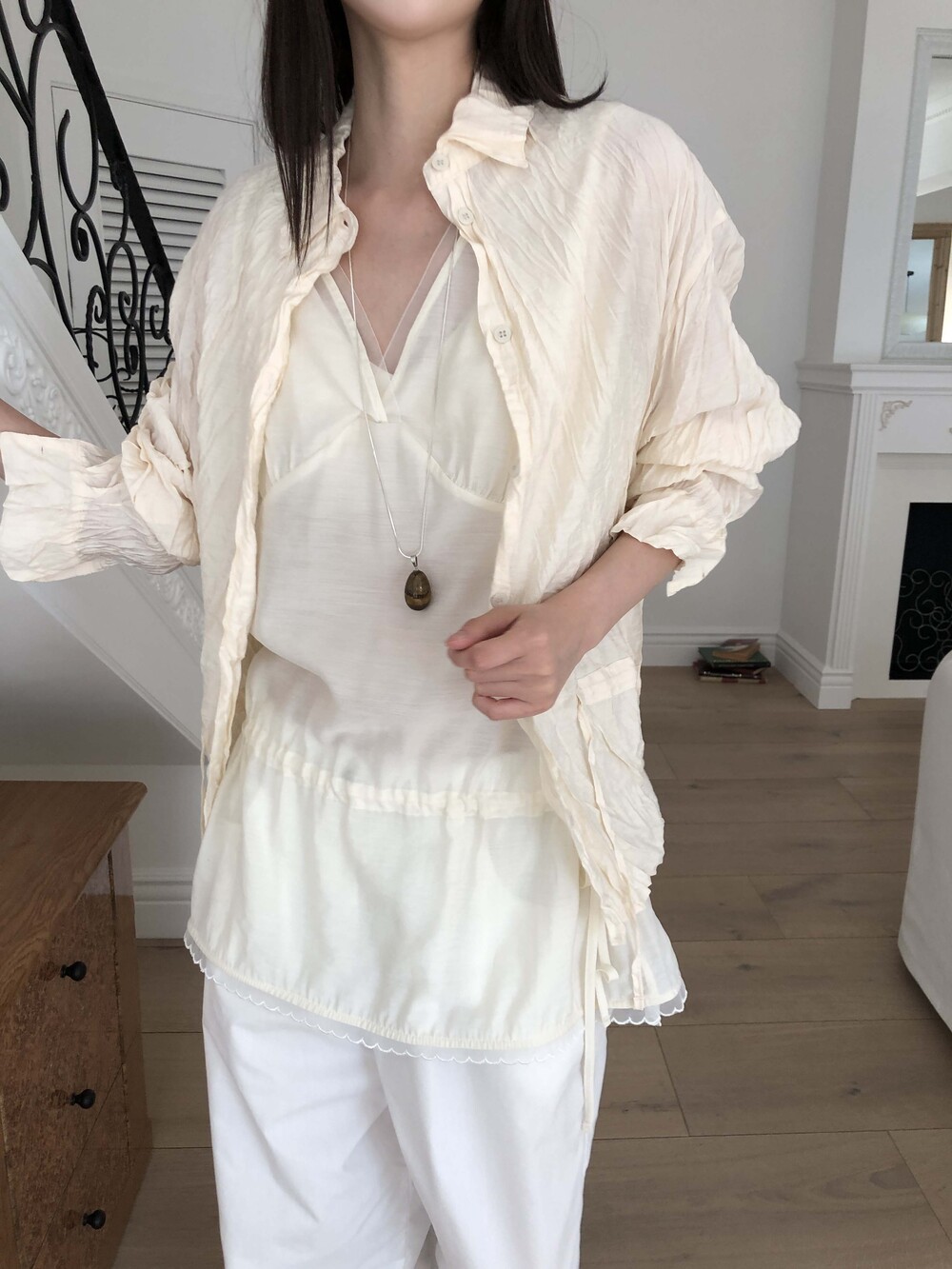 어깨 38 가슴 45 암홀 22 허리 ~49(조절0) 밑단 55 총장 72