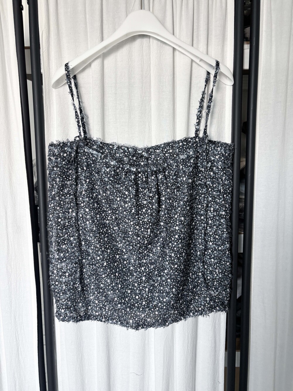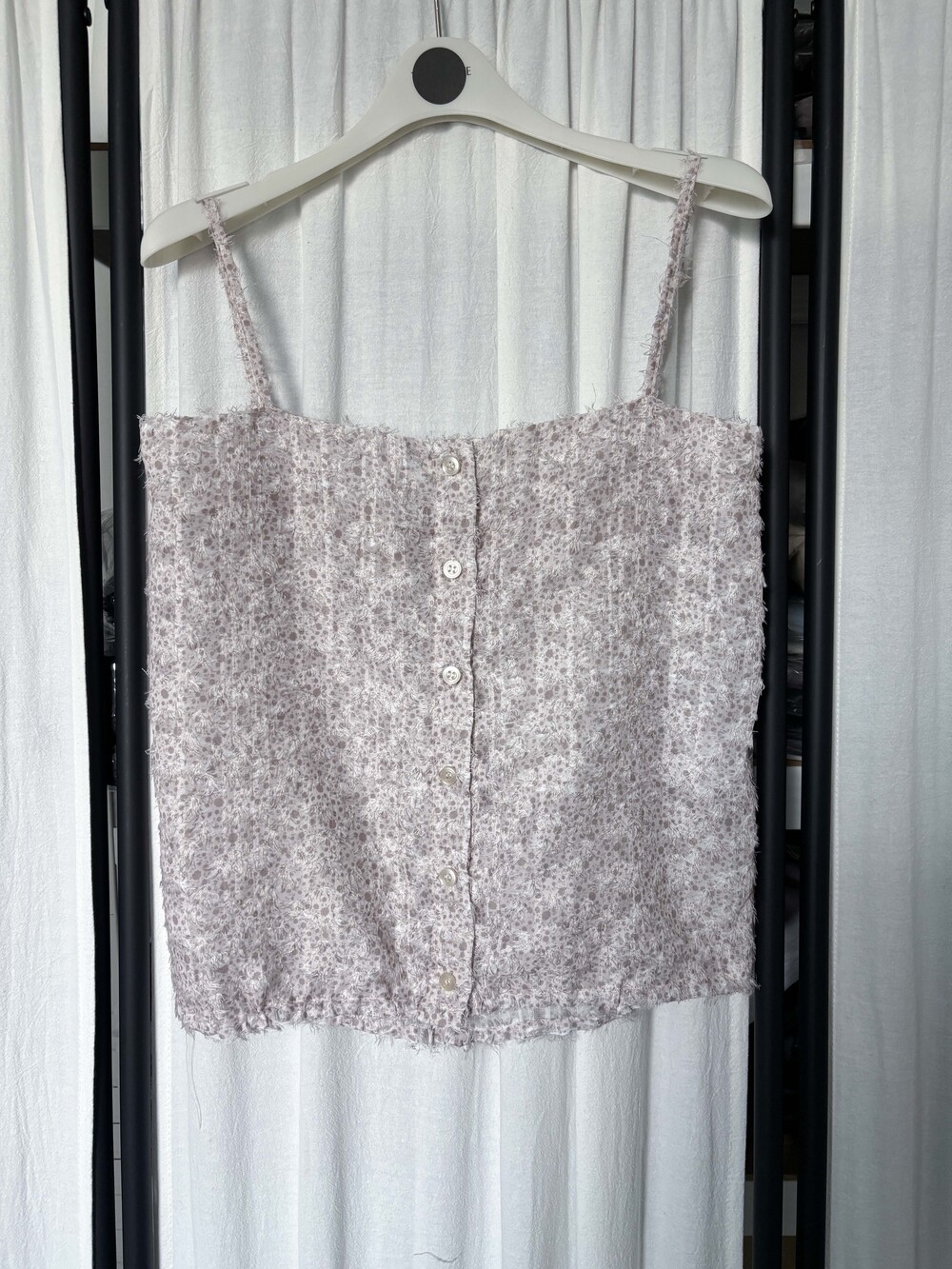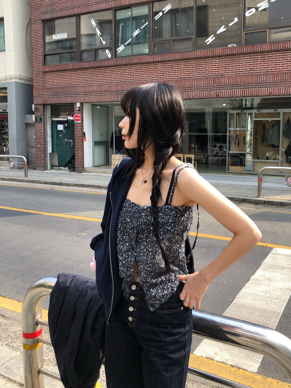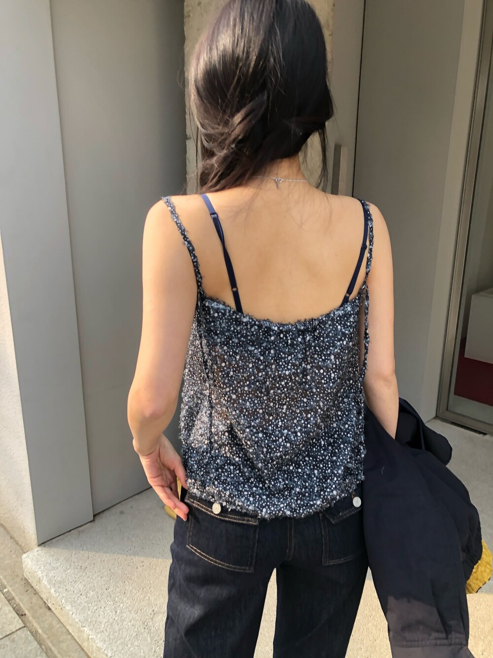 어깨끈 조절가능 가슴 40.5 암홀 14 밑단 40.5 총장 35.5 (어깨끈 제외)