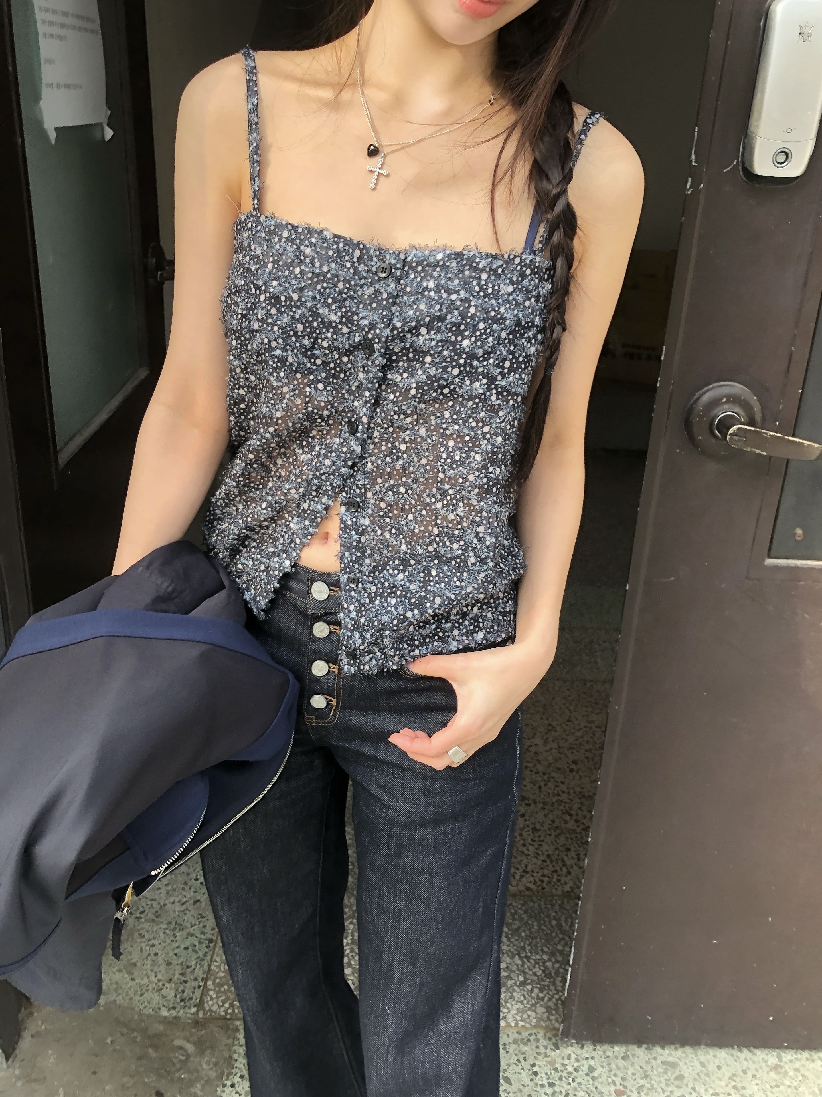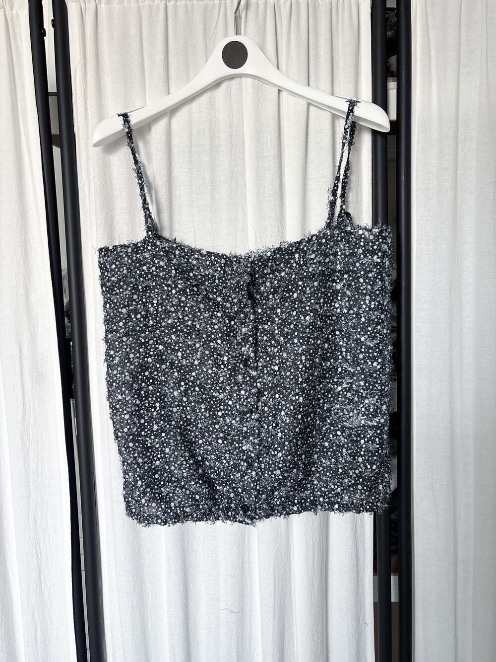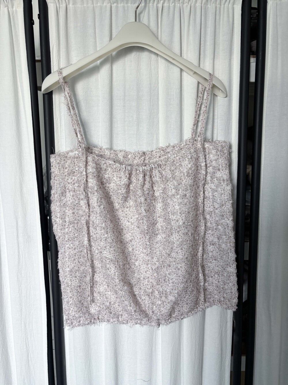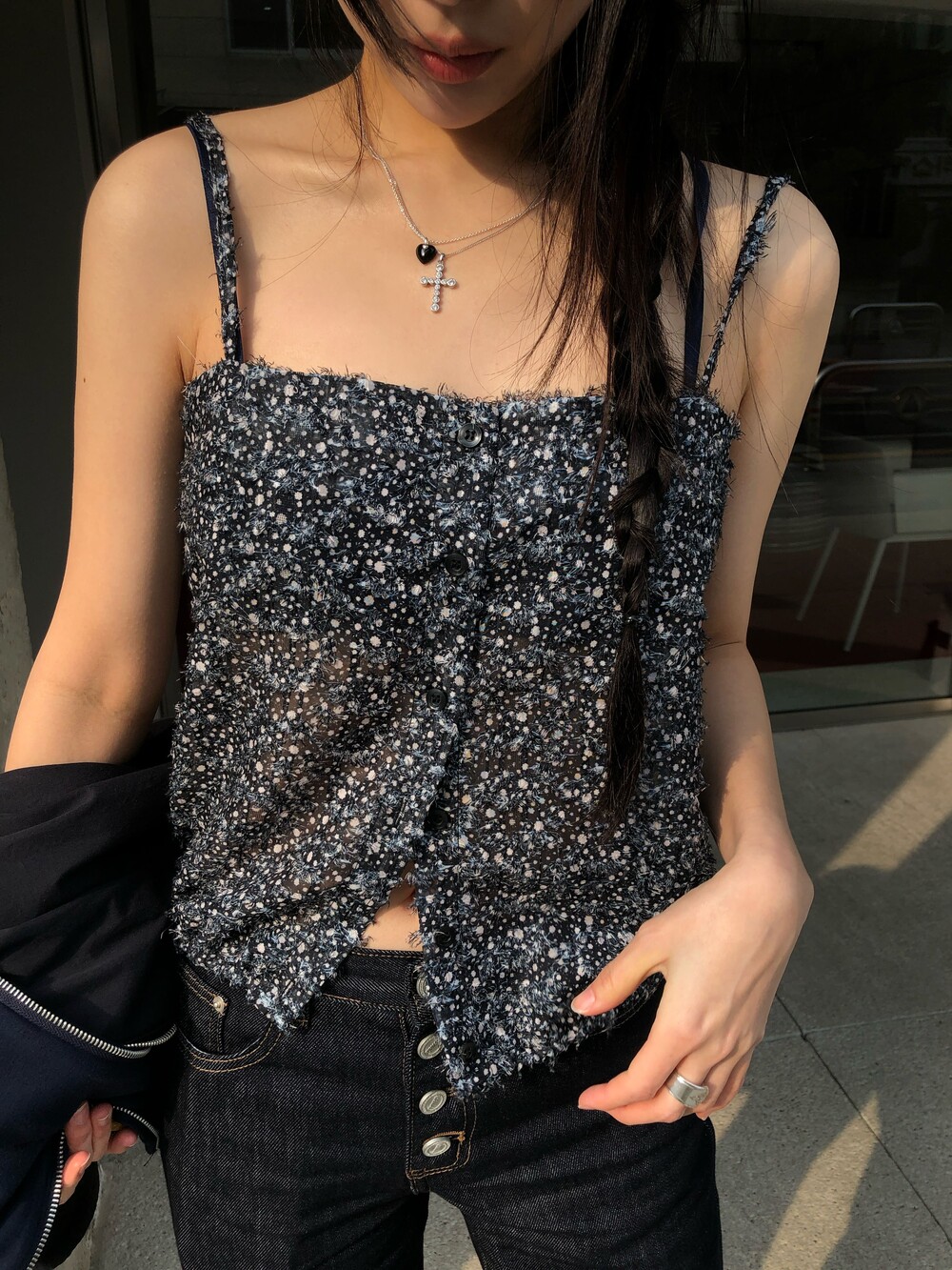 어깨끈 조절가능 가슴 40.5 암홀 14 밑단 40.5 총장 35.5 (어깨끈 제외)