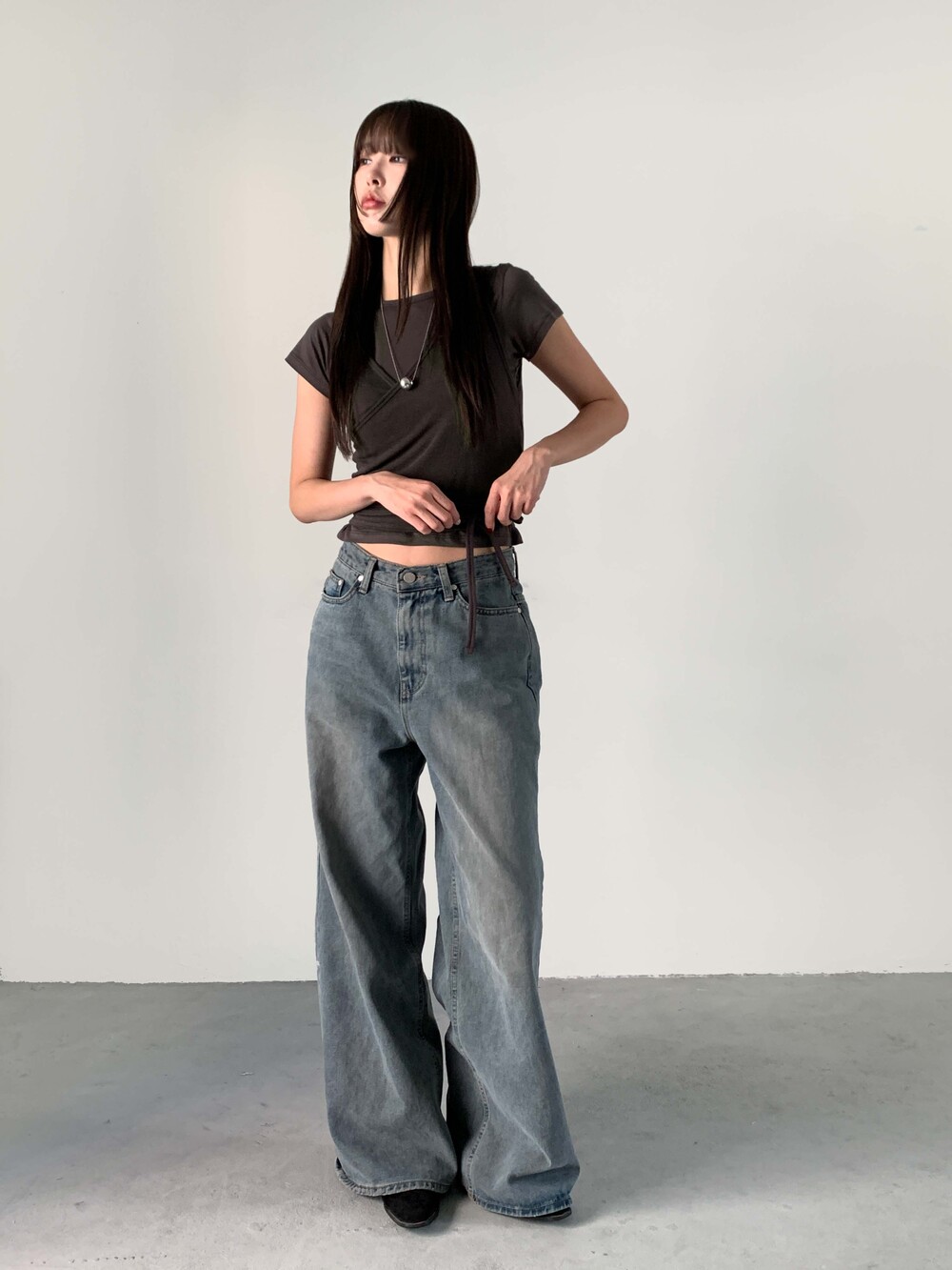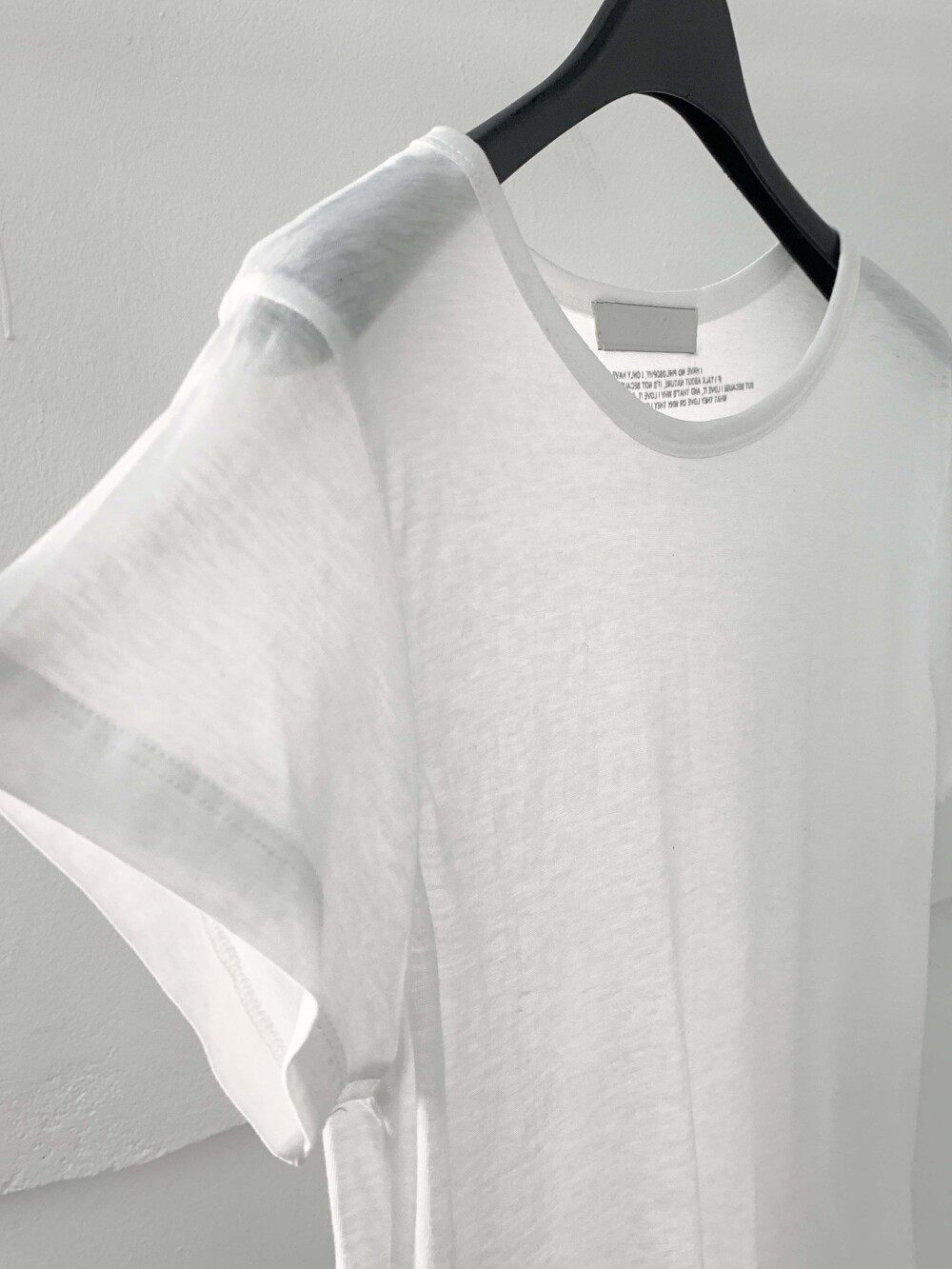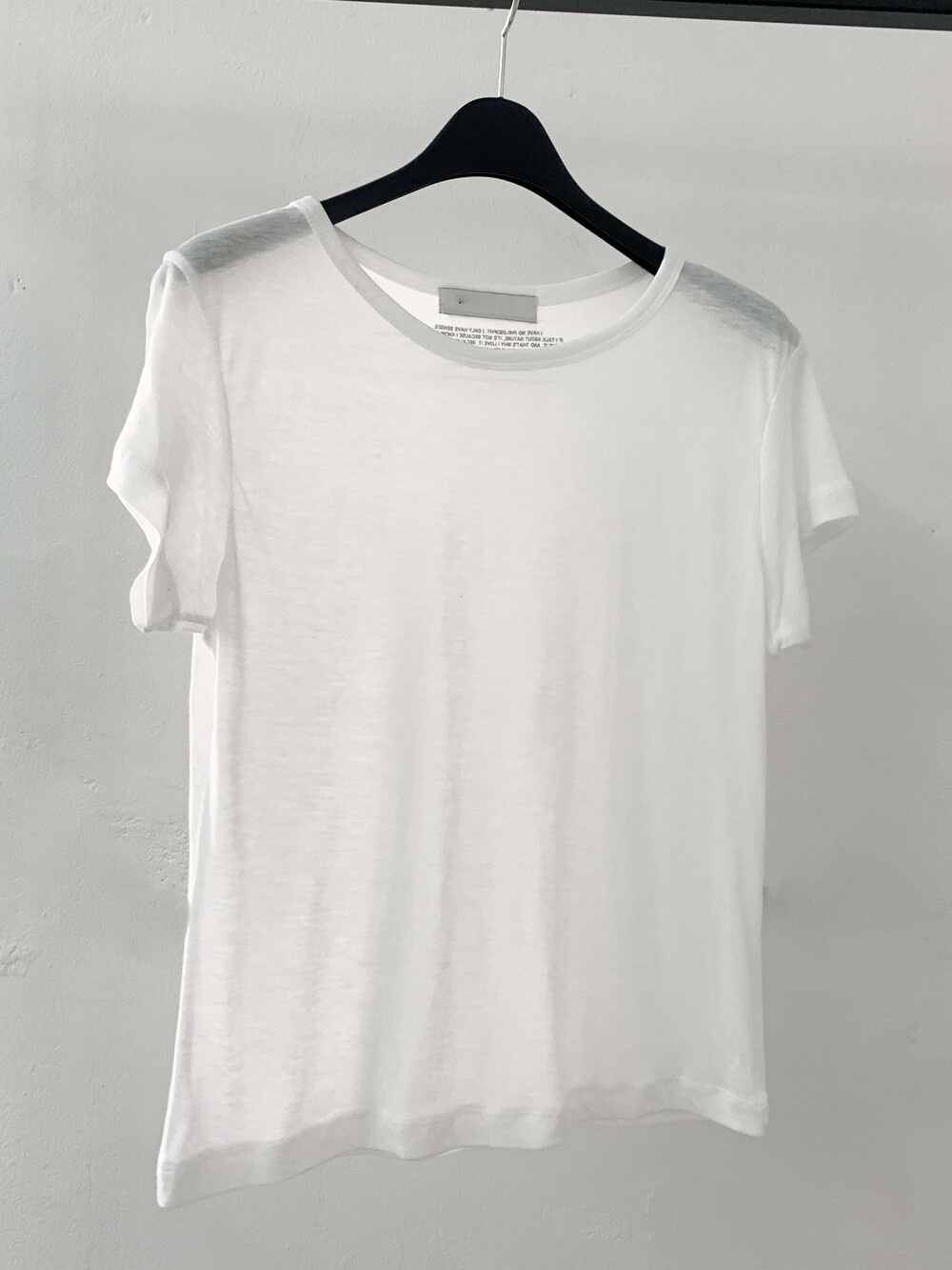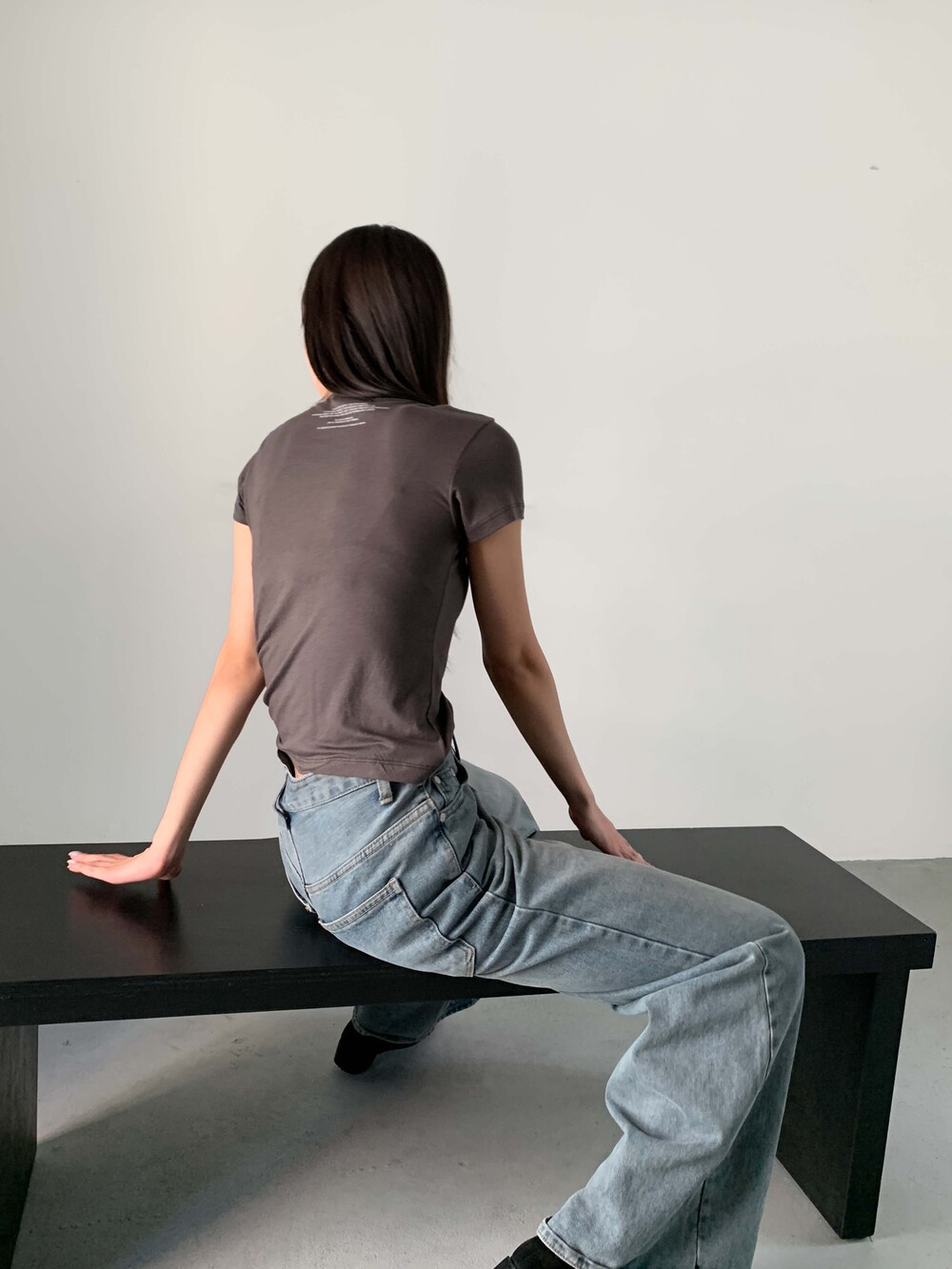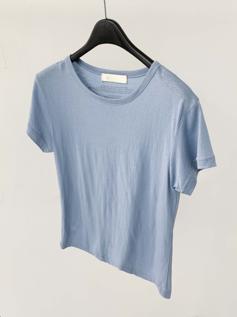 깔끔한 실루엣에 세미 크롭 기장감과 짧은 소매가 돋보이며,