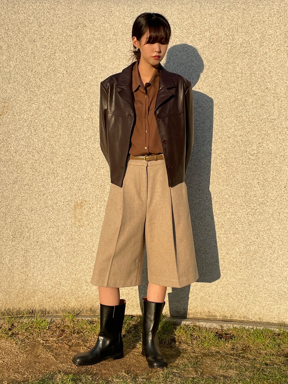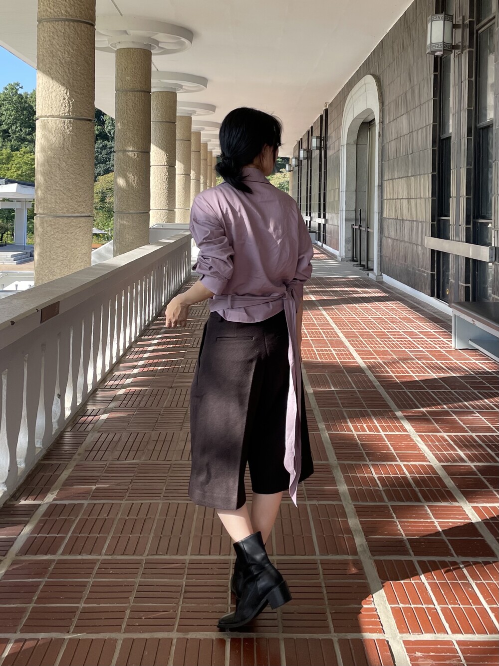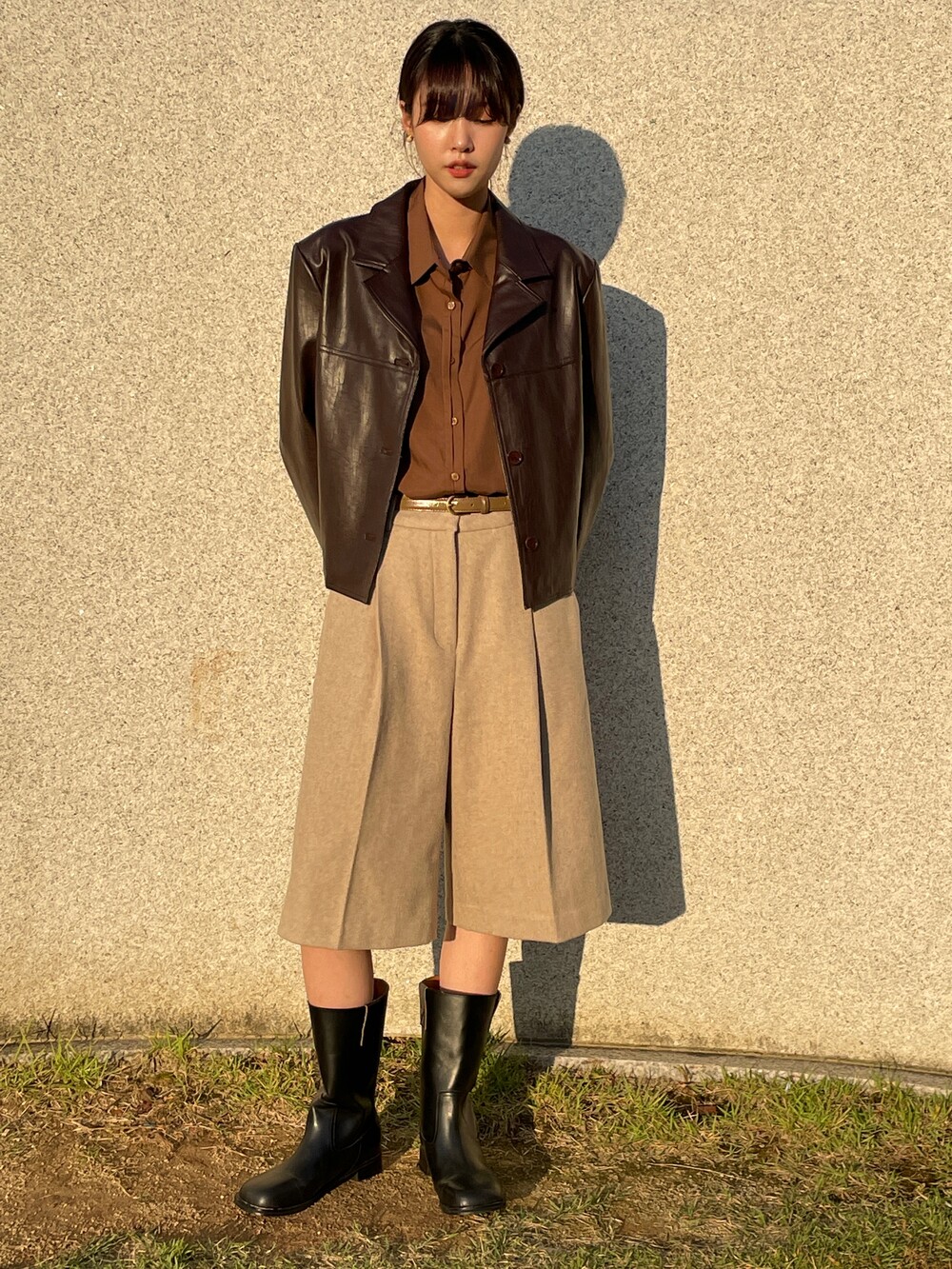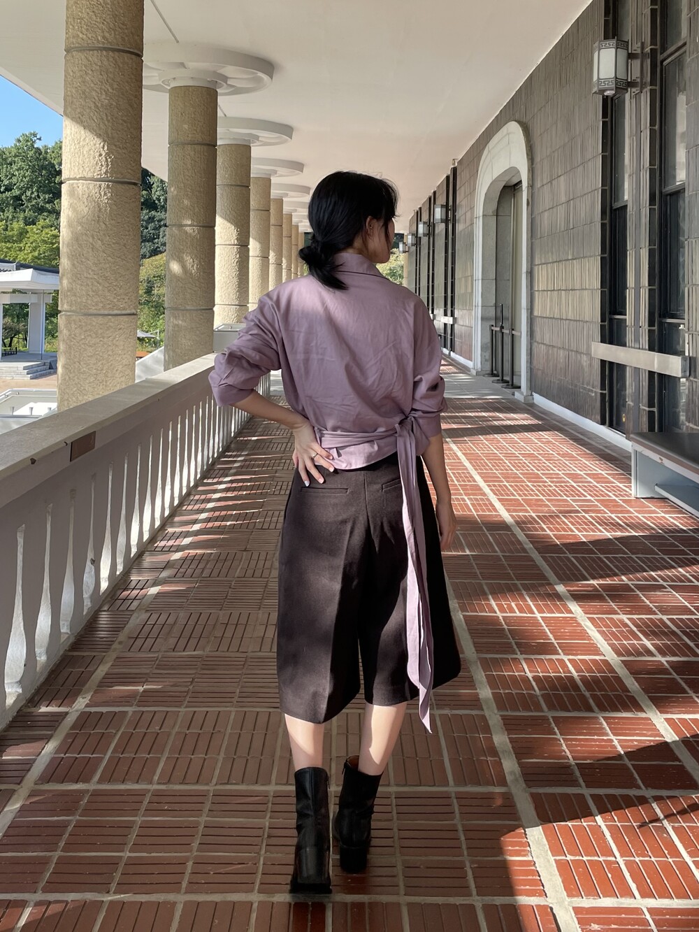 원 핀턱이 밑단까지 내려와 핏을 깔끔하게 잡아줍니다.