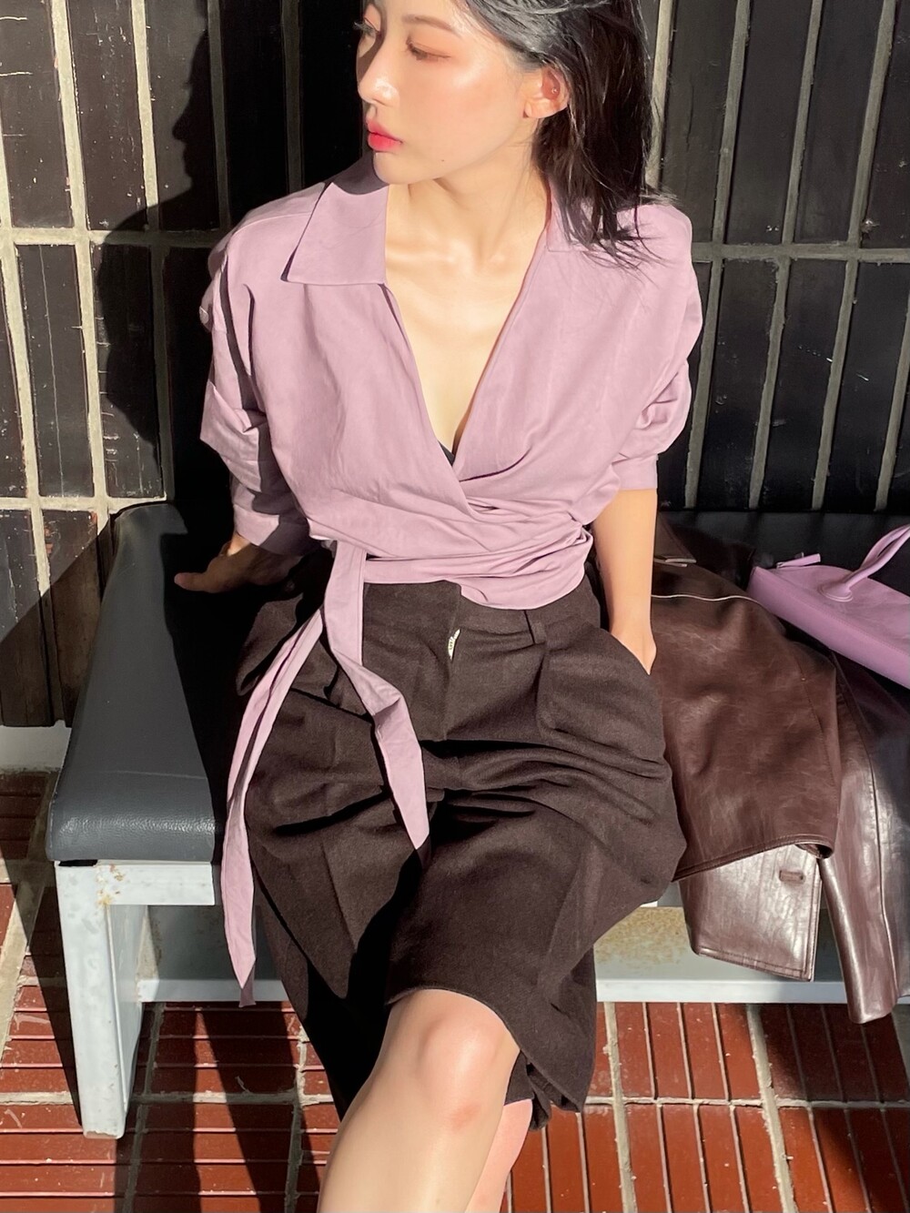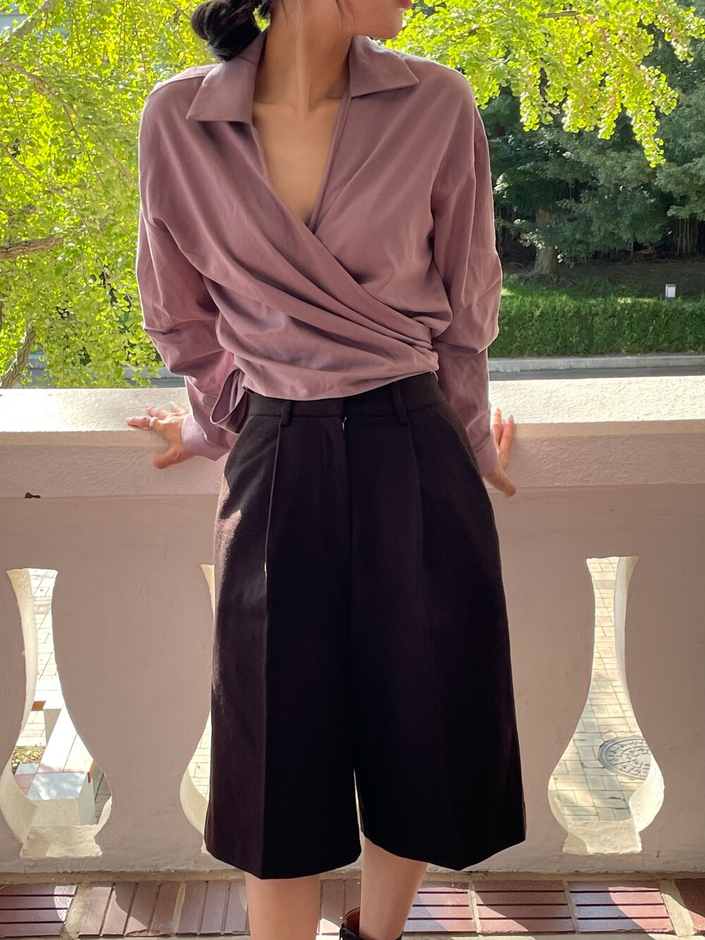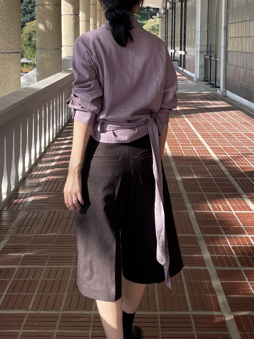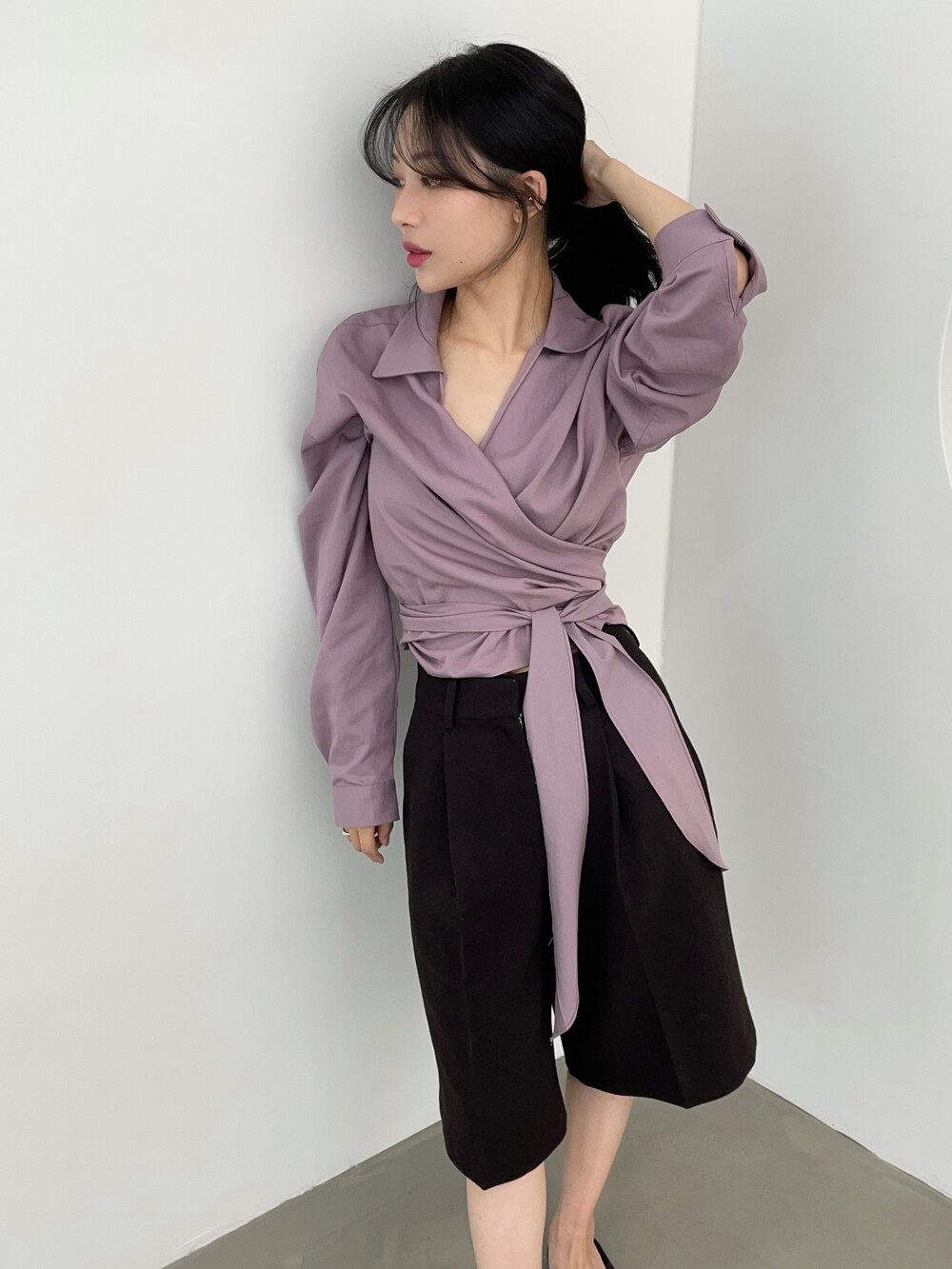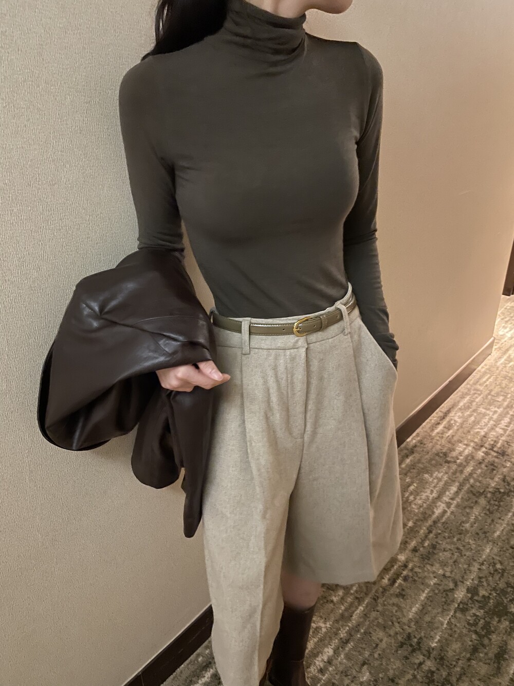원 핀턱이 밑단까지 내려와 핏을 깔끔하게 잡아줍니다.