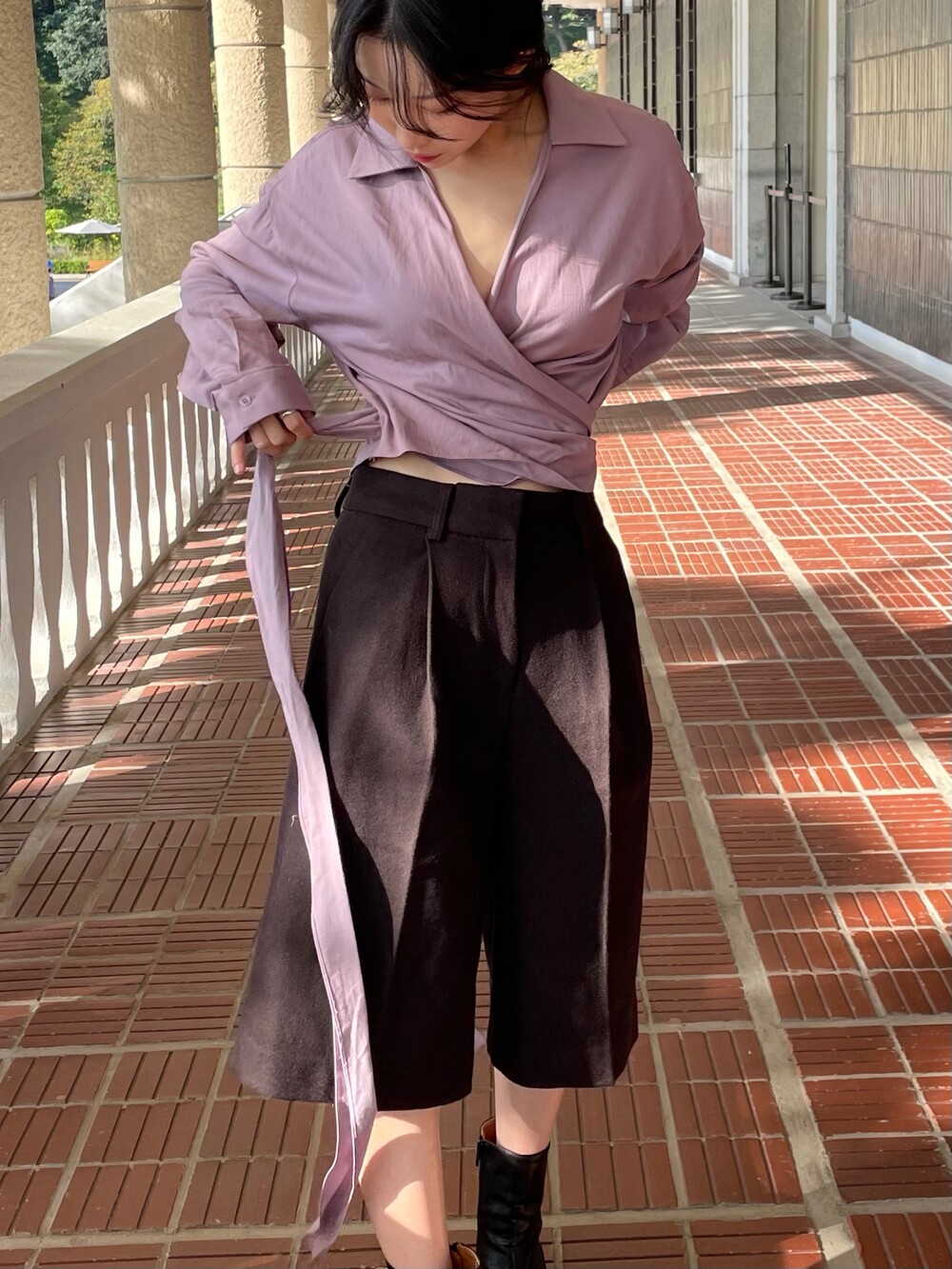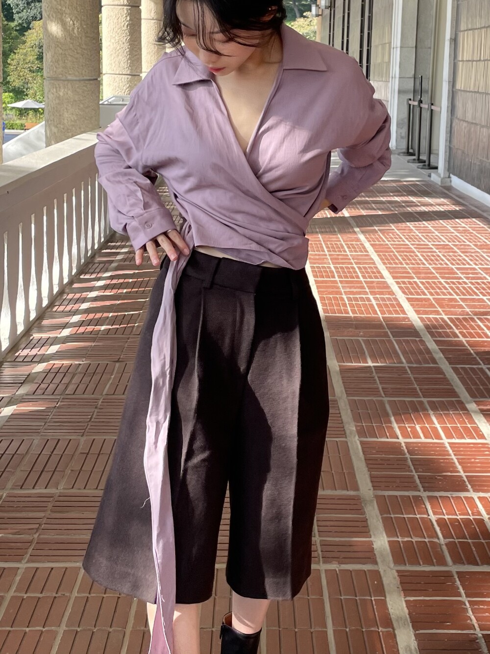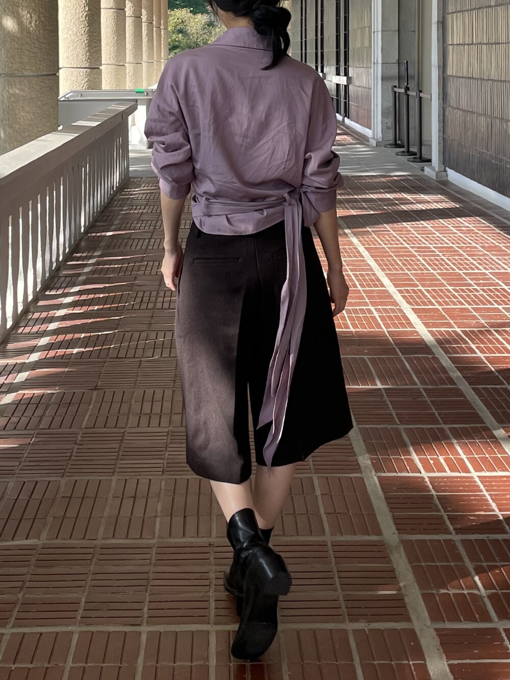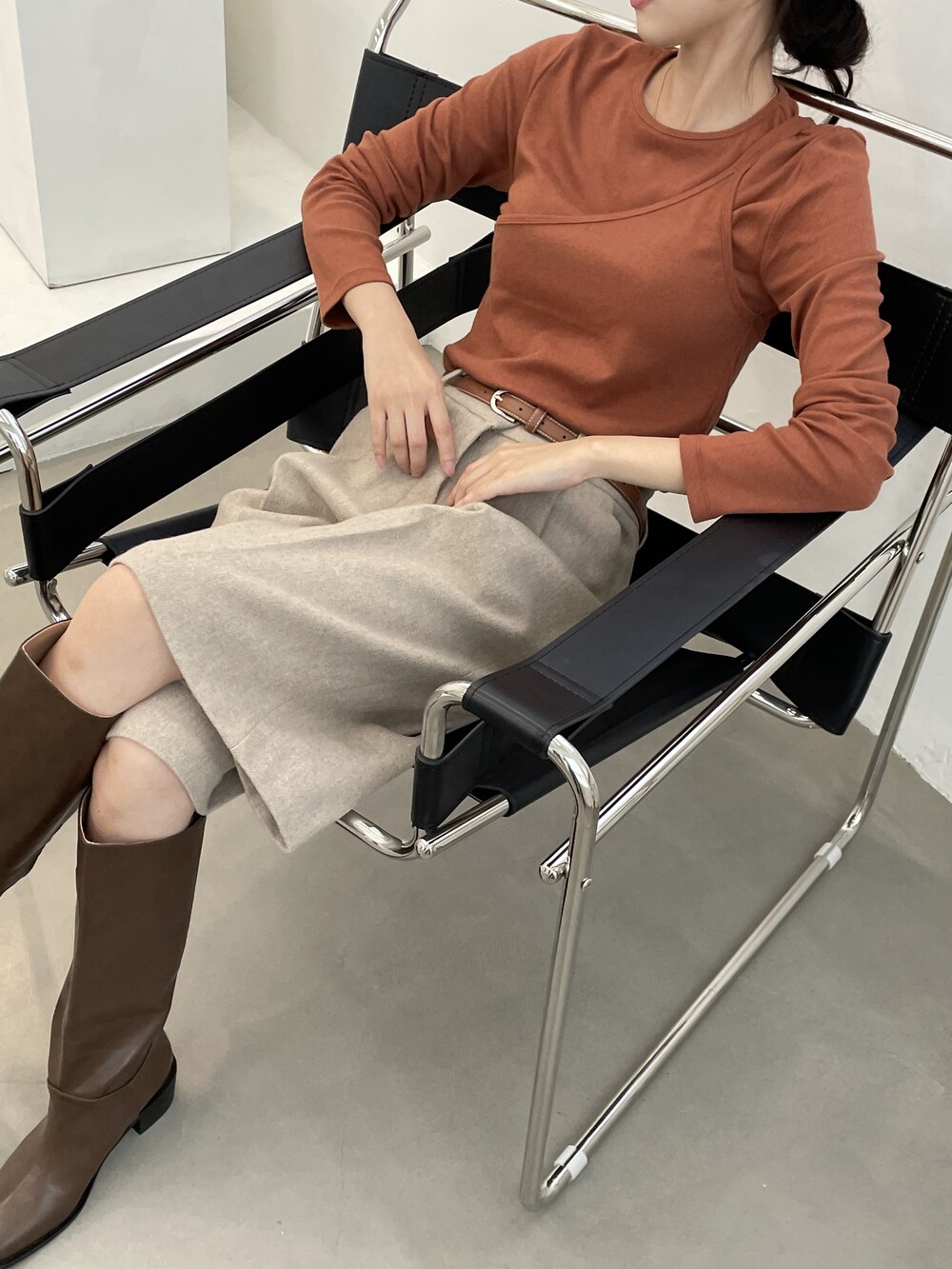 원 핀턱이 밑단까지 내려와 핏을 깔끔하게 잡아줍니다.