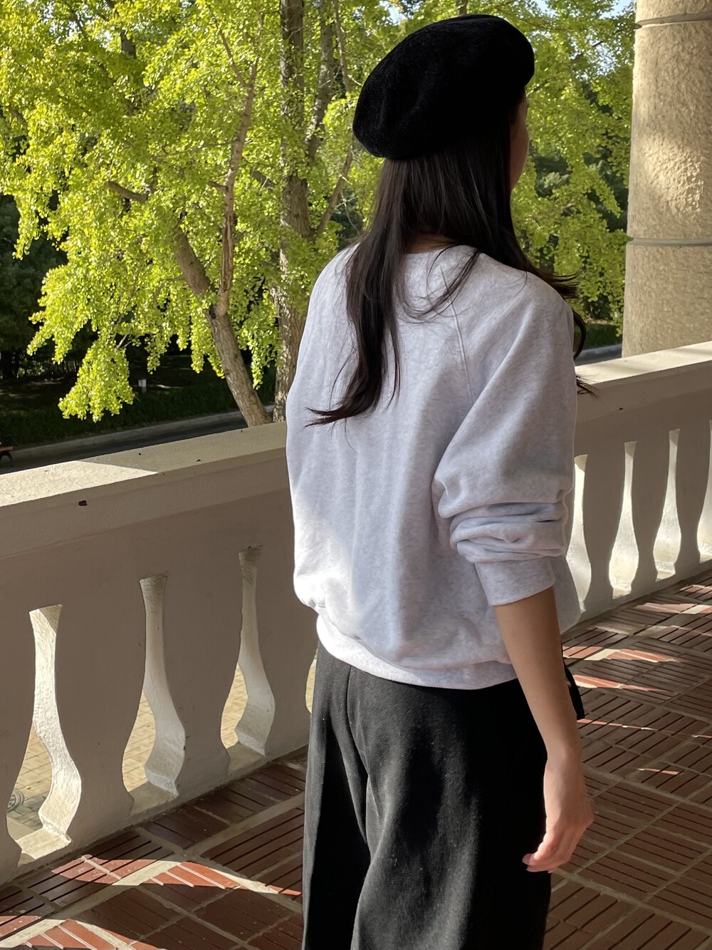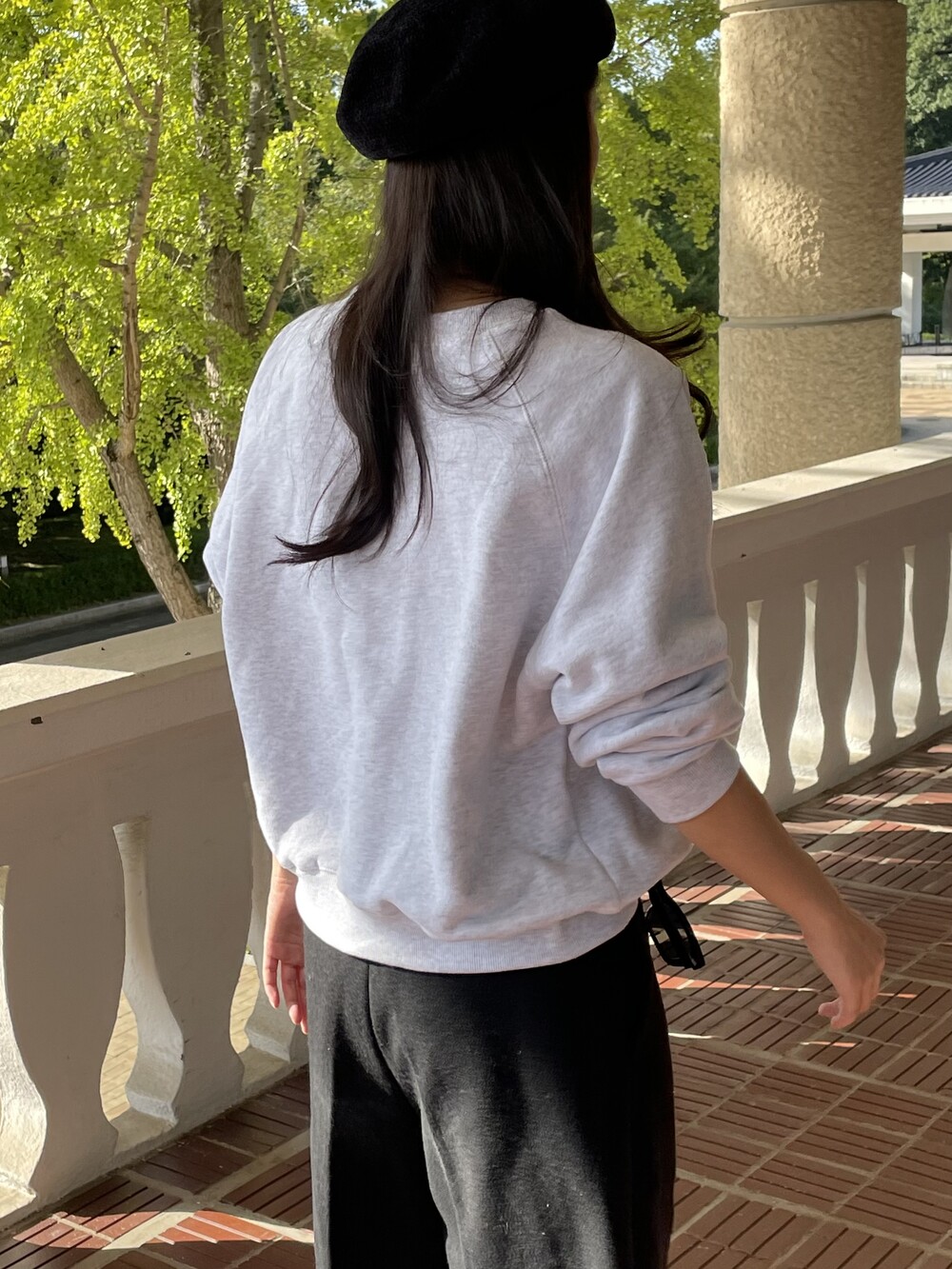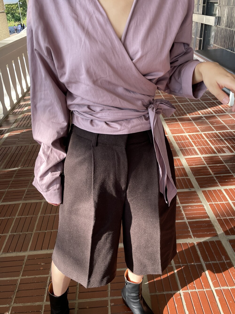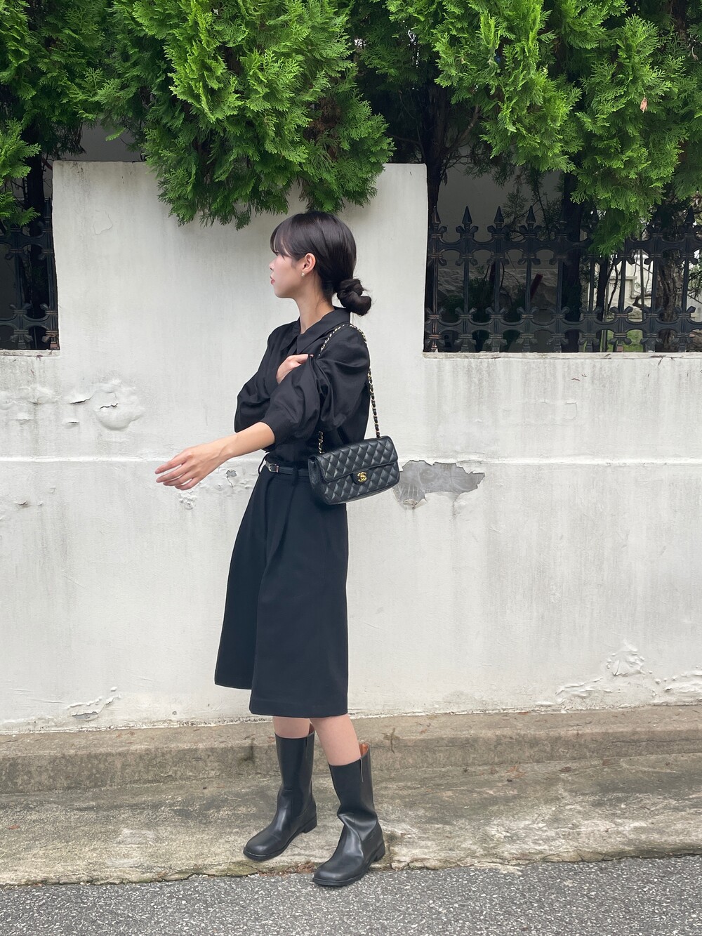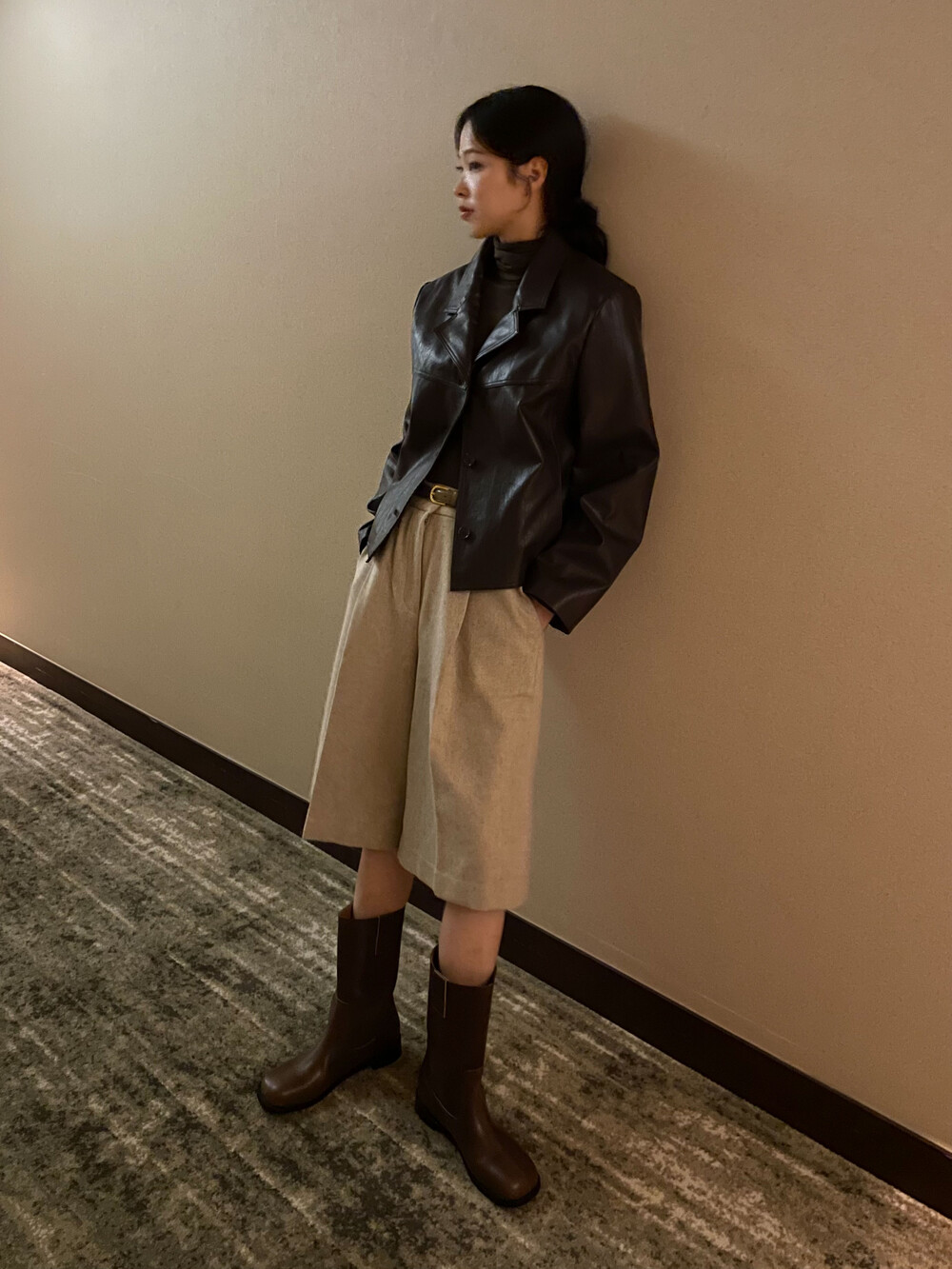 원 핀턱이 밑단까지 내려와 핏을 깔끔하게 잡아줍니다.