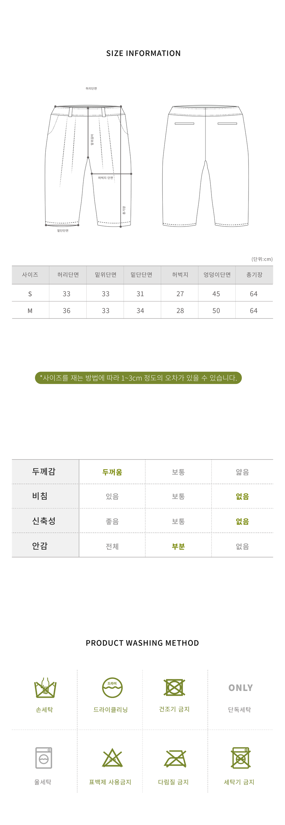 -사이즈 측정 방법에 따른 오차 범위 내 (1~3cm)
