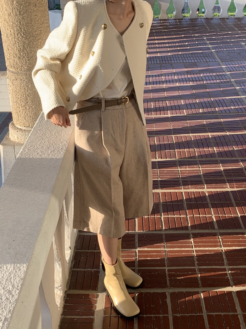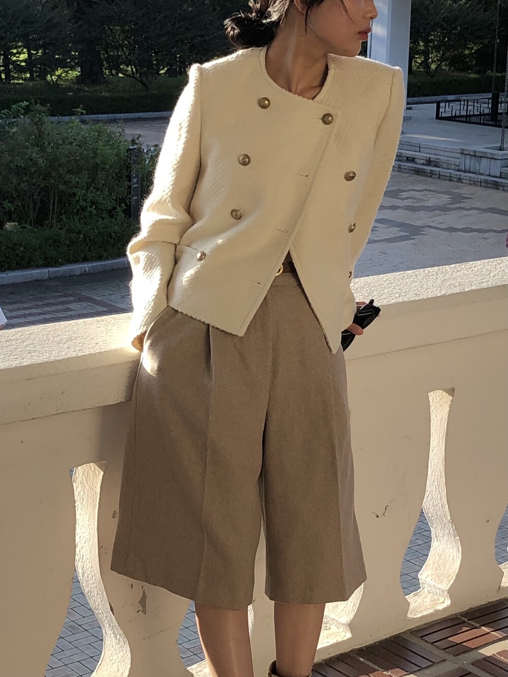 버뮤다 기장의 울 팬츠