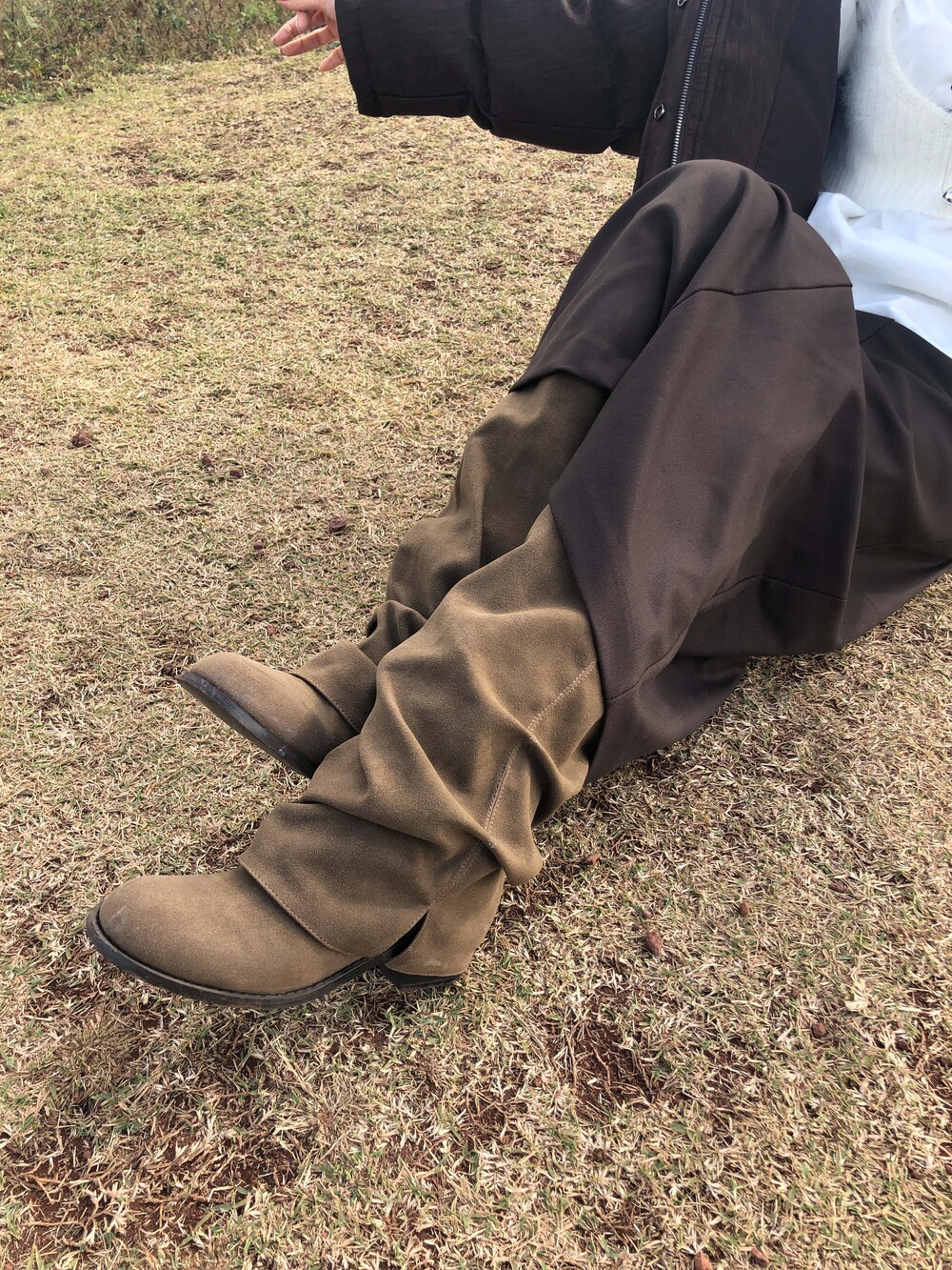 스웨이드 원단에 자연스럽게 주름을 잡아주니 더욱 멋스럽고